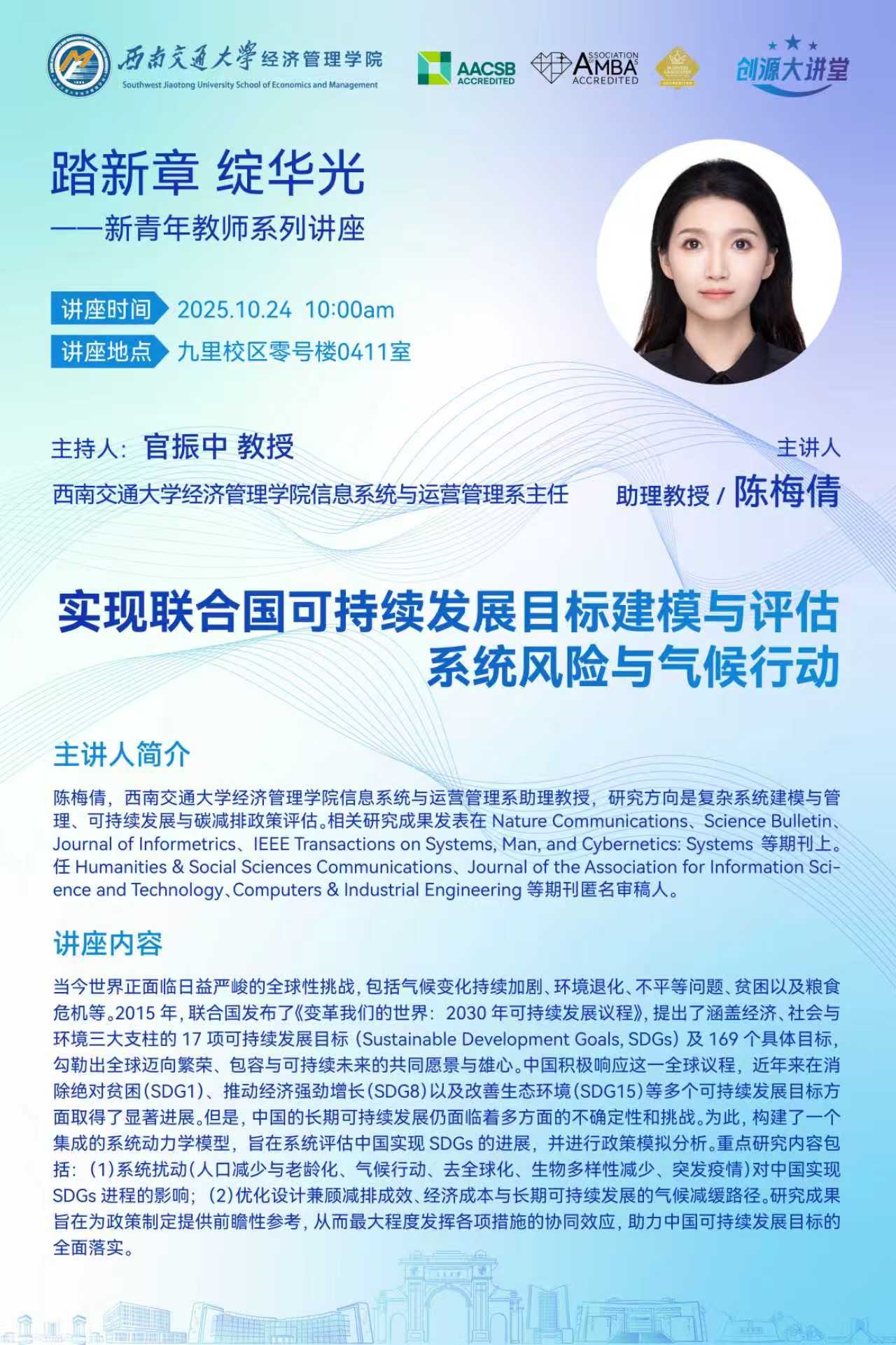 Speaker ProfileCHEN Meiqian is an Assistant Professor in Department of Information System and Operation Management at School of Economics and Management, Southwest Jiaotong University. Her research focuses on complex systems modeling and management, sustainable development, and the evaluation of carbon reduction policies. Her work has been published in journals such as Nature Communications, Science ...