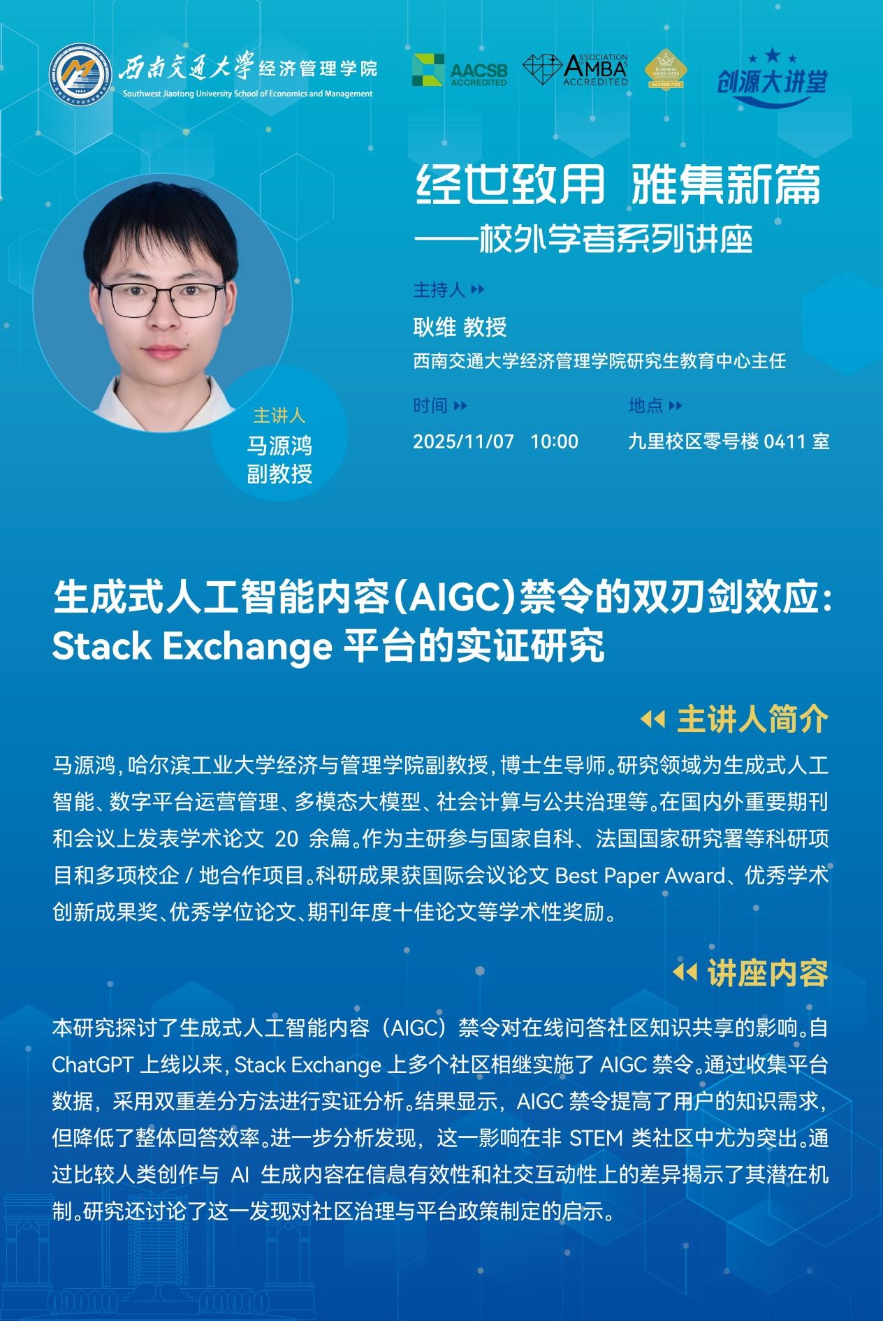 Speaker ProfileDr. MA Yuanhong is an Associate Professor and Ph.D. Supervisor at the School of Economics and Management, Harbin Institute of Technology. His research areas include generative AI, digital platform operations management, multimodal large models, social computing, and public governance. He has published over 20 academic papers in major domestic and international journals and conferences....
