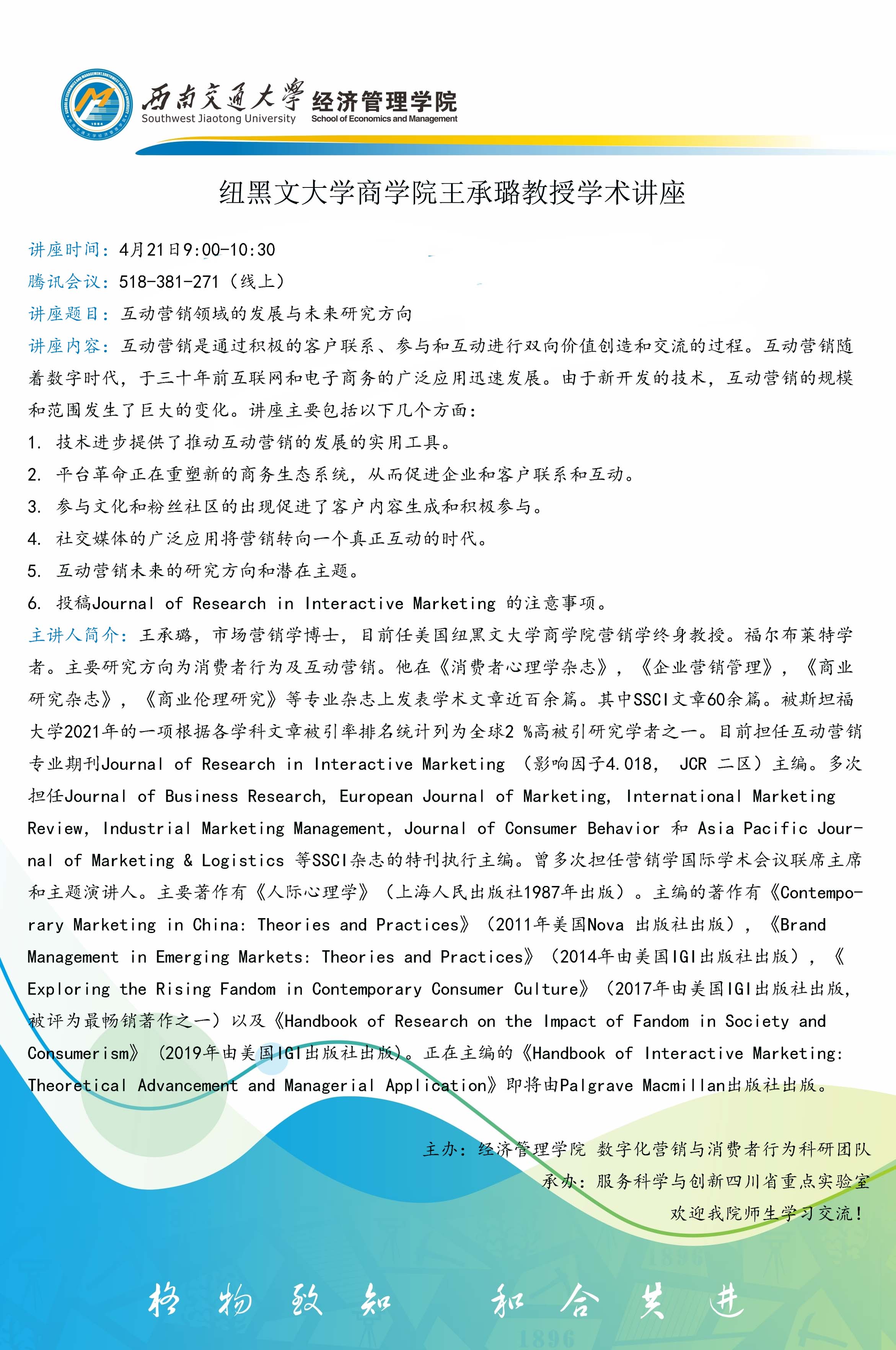 纽黑文大学商学院王承璐教授学术讲座