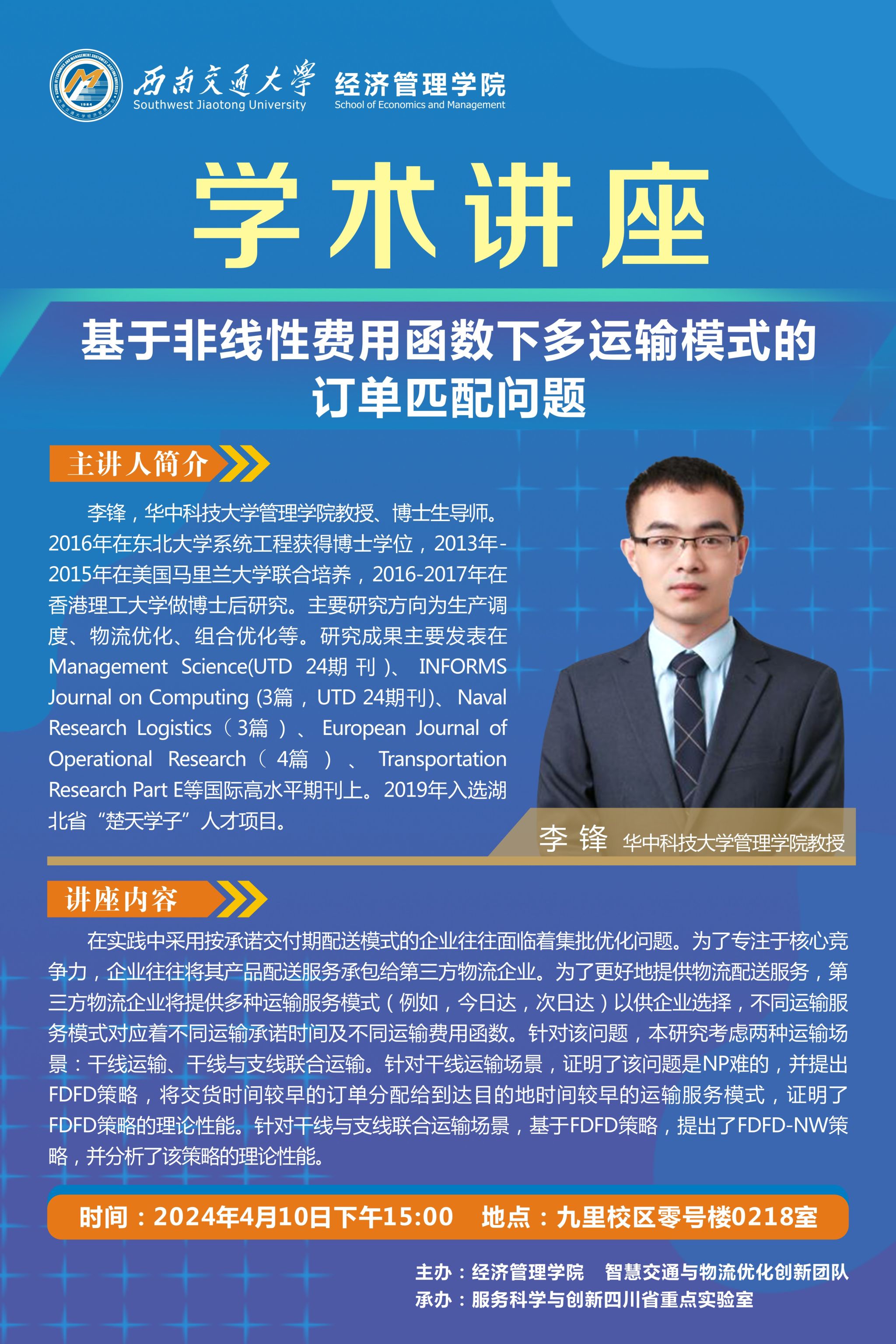 华中科技大学李锋教授学术讲座