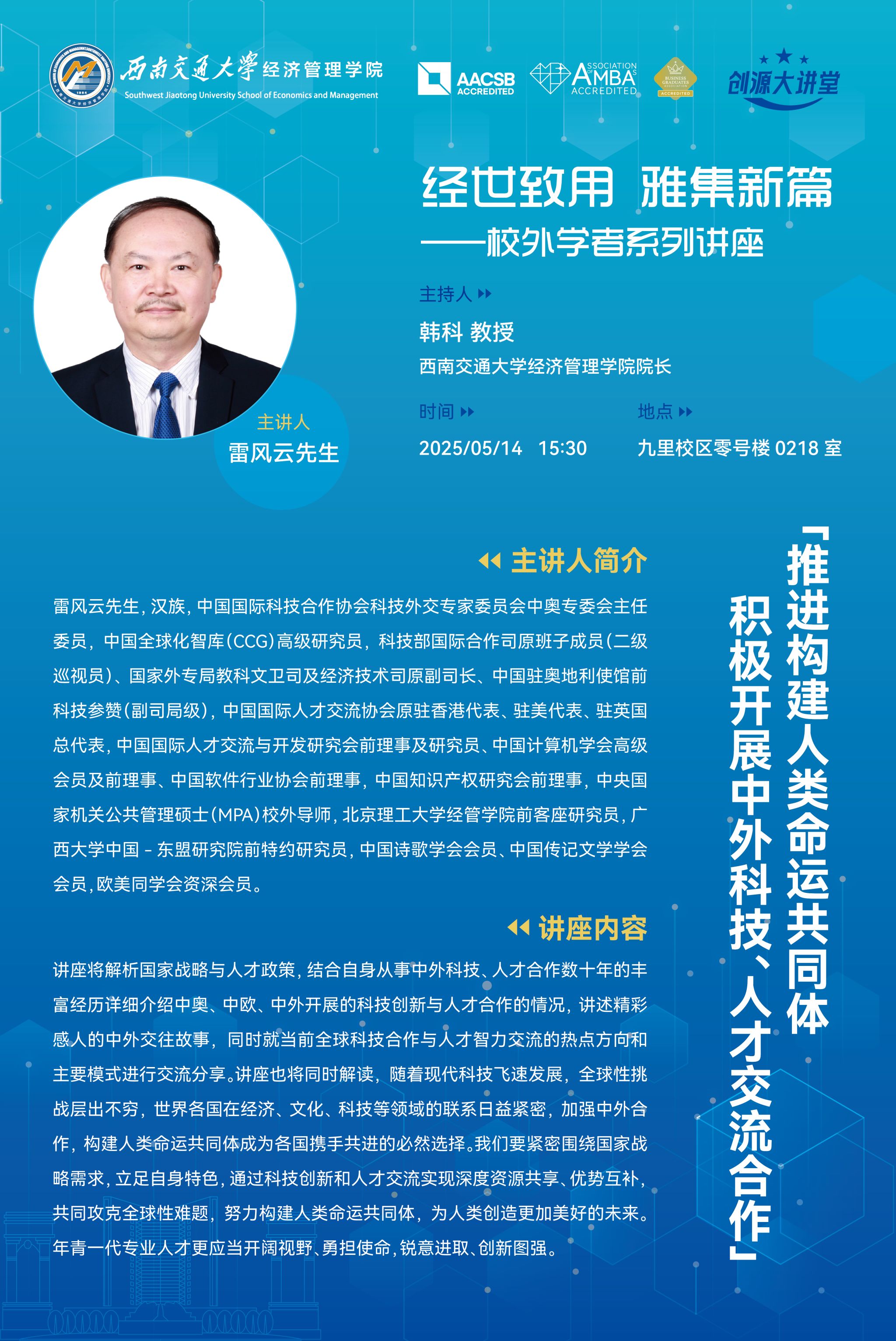 中国国际科技合作协会科技外交专家委员会中奥专委会主任委员雷风云先生学术讲座