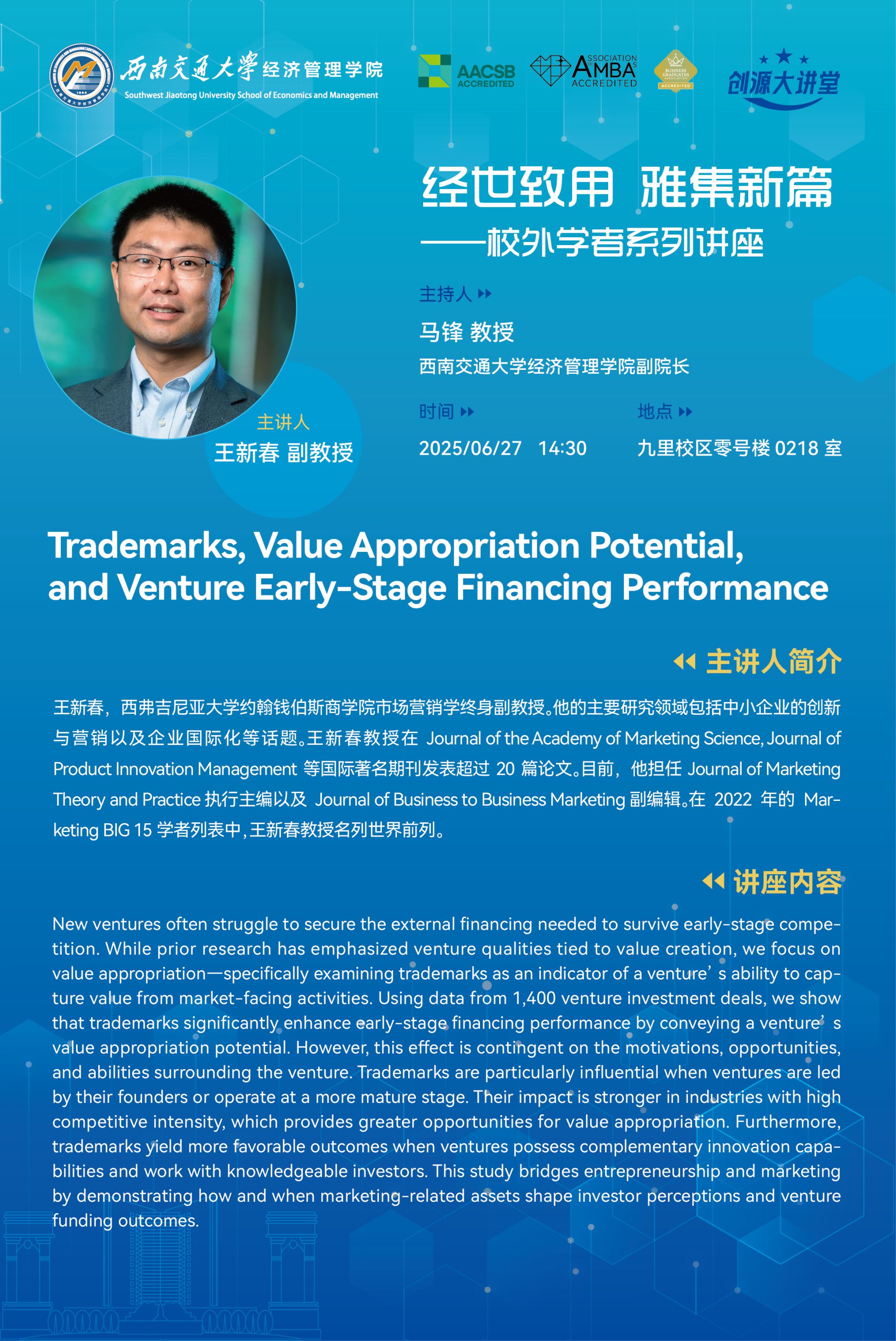 美国西弗吉尼亚大学约翰钱伯斯商学院王新春副教授学术讲座