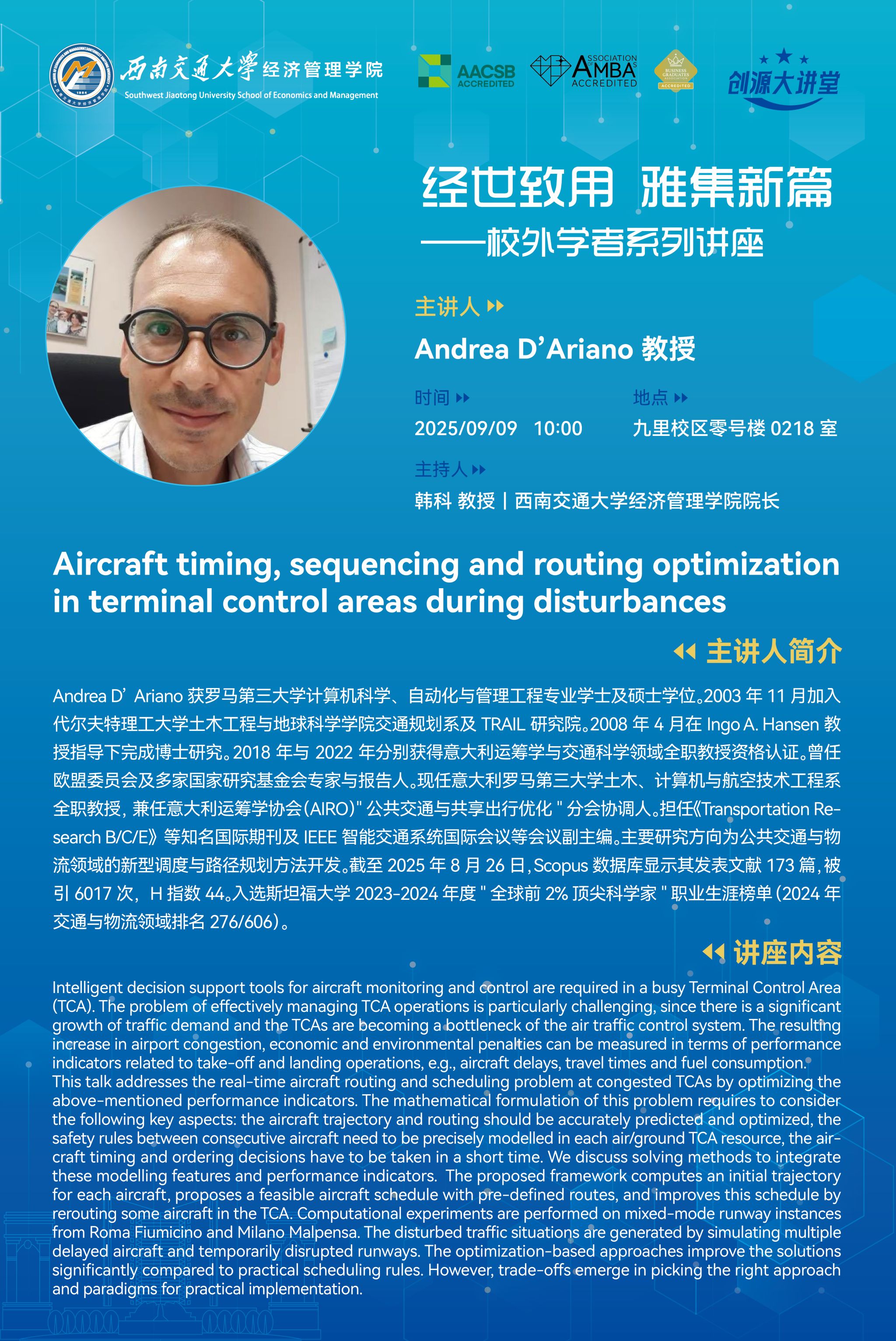 罗马第三大学Andrea D’Ariano教授学术讲座