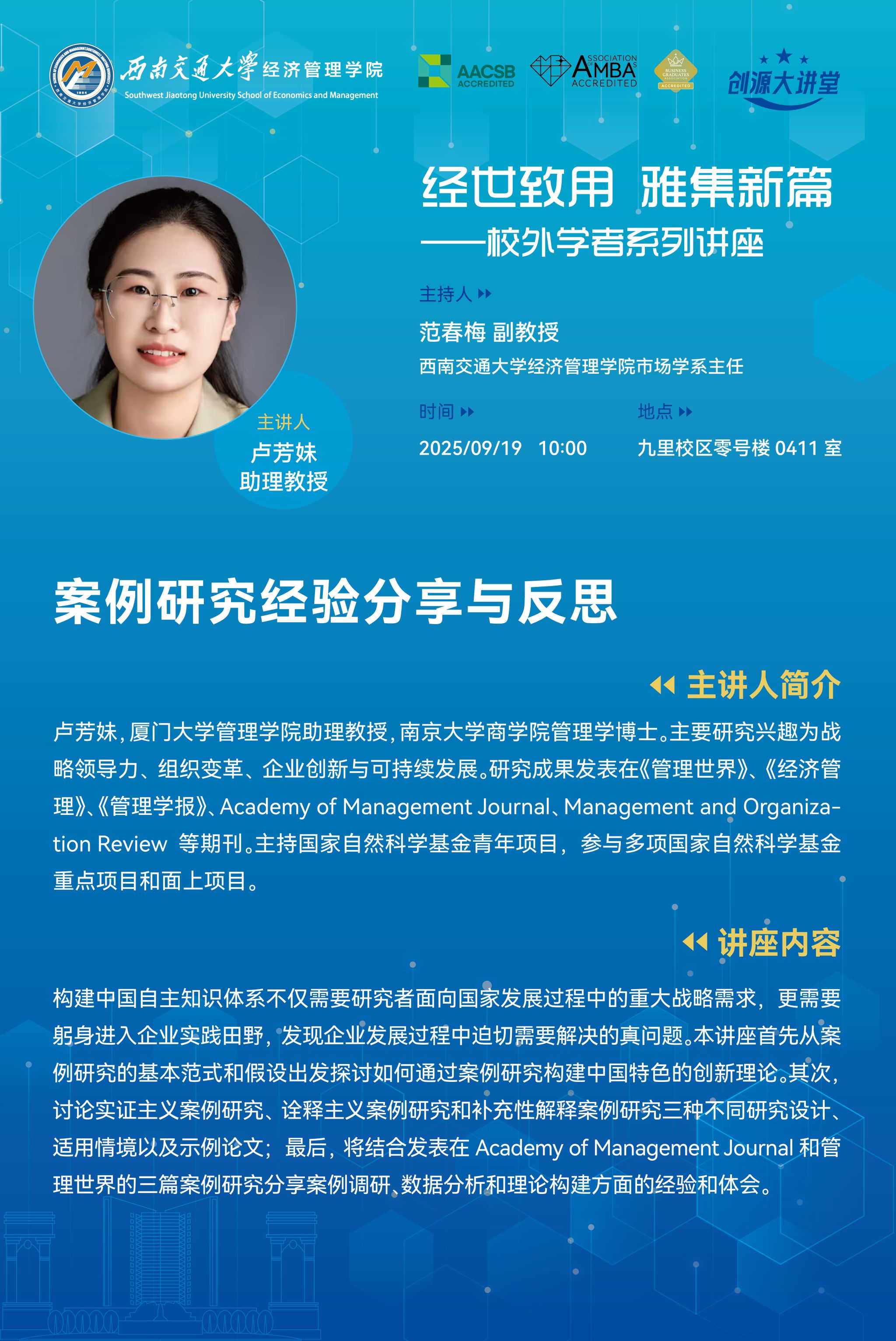 厦门大学管理学院卢芳妹助理教授学术讲座