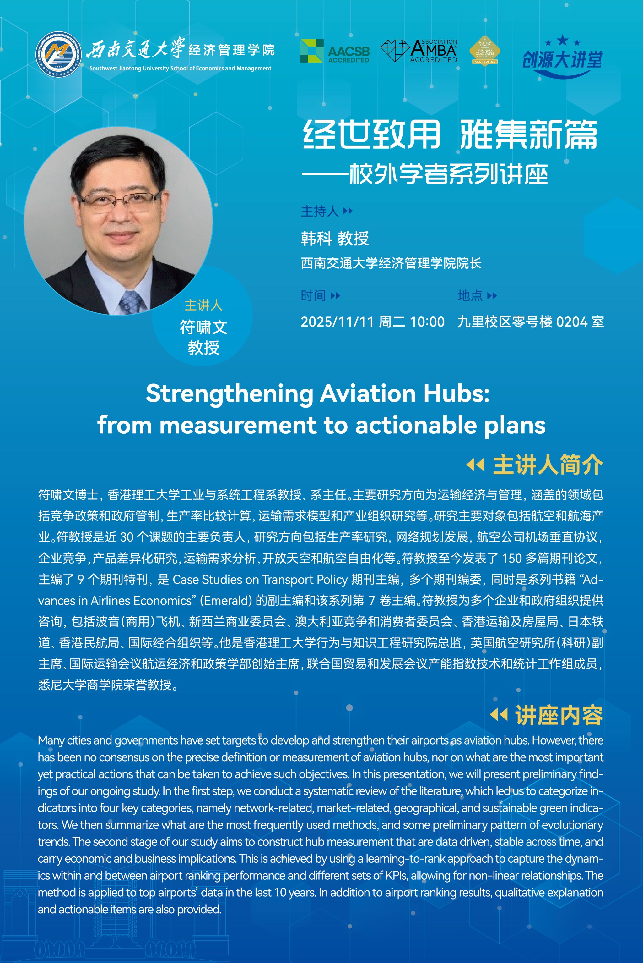 香港理工大学工业与系统工程系符啸文教授学术讲座