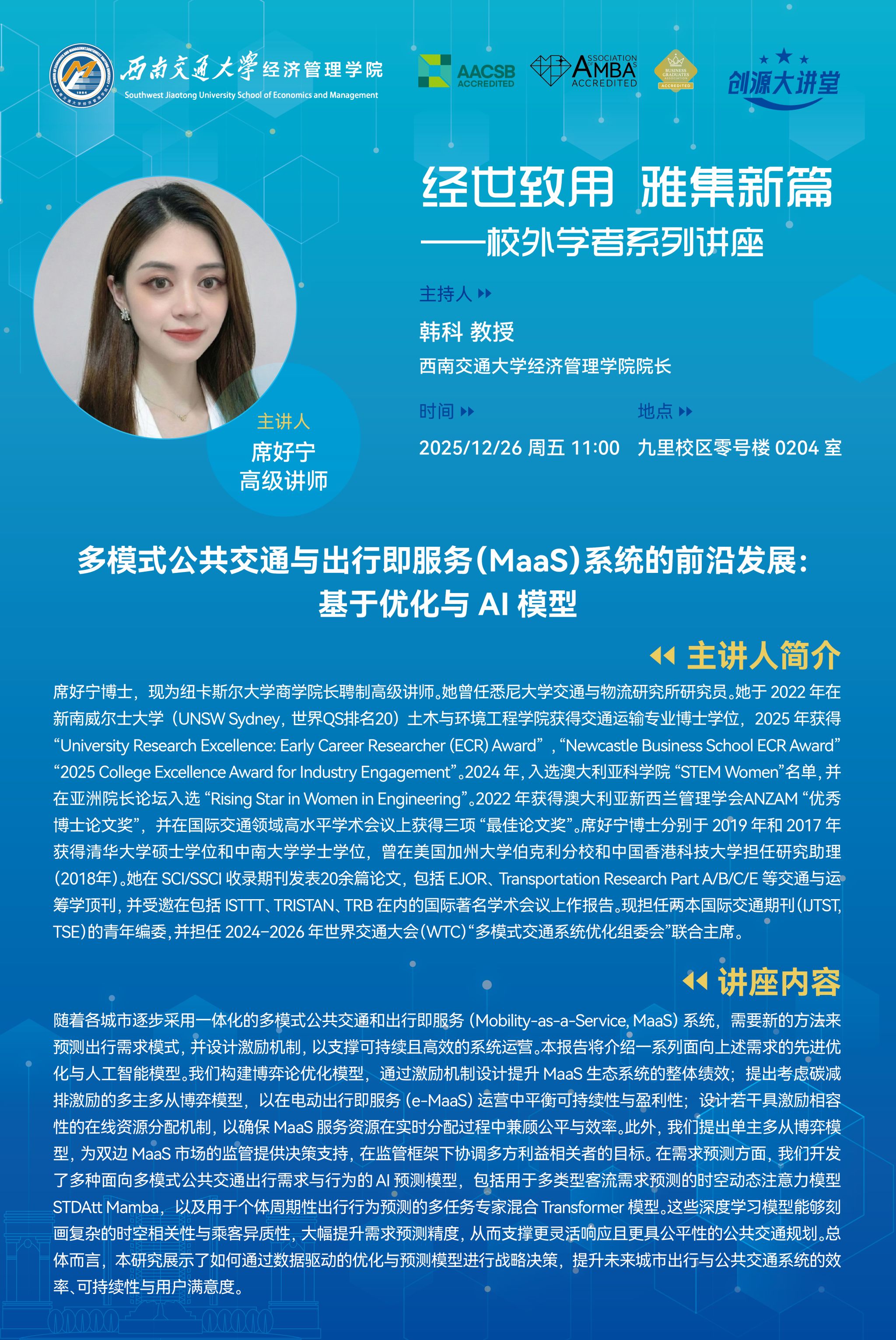 澳大利亚纽卡斯尔大学商学院席好宁高级讲师学术讲座