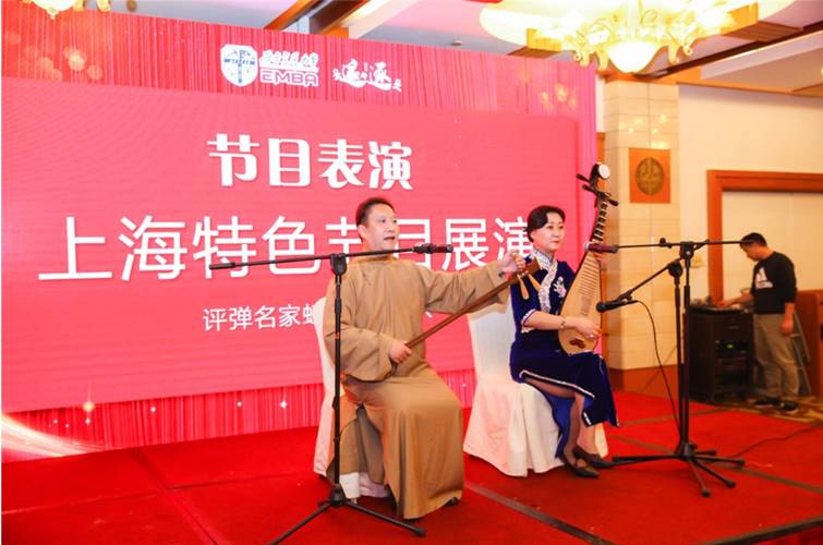 副院长郭强教授的热情豪迈的祝酒词把年会的现场气氛推向高潮,年会中,精彩节目层出不穷:上海班邀请了沪上知名艺术家给大家演绎属于江南文化的民族国粹-评弹;