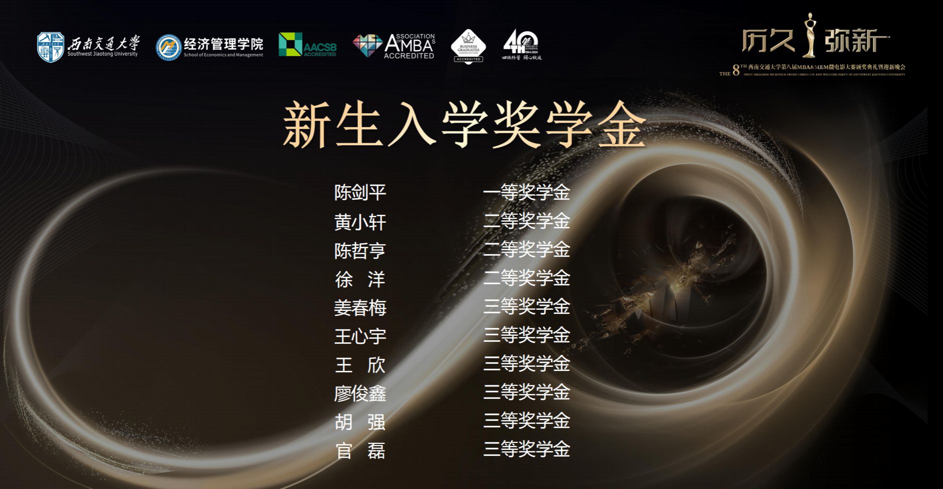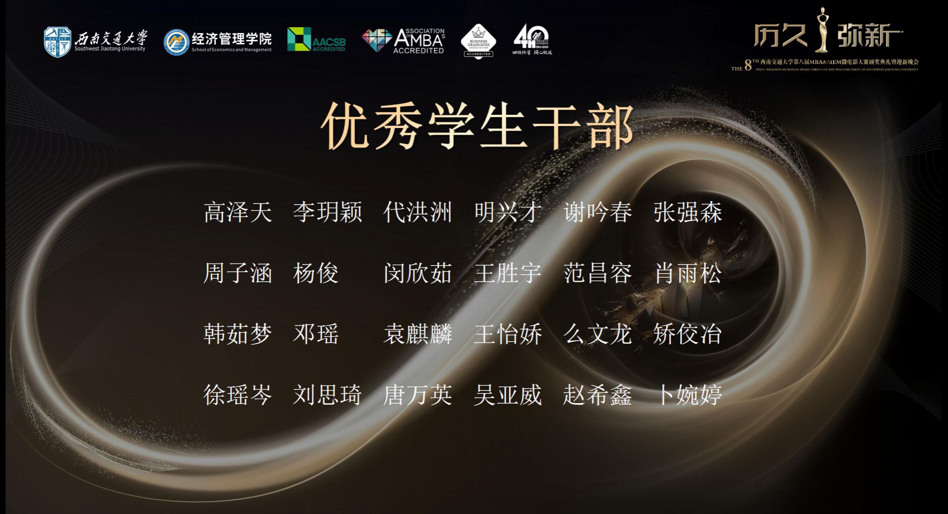 在这令人无比激动和难忘的晚会中,学院为2023级MBA、MEM的77名优秀学生与24名优秀学生干部举办了颁奖仪式;还为2024级MBA、MEM入学成绩前10的学员颁发了新生入学奖学金。