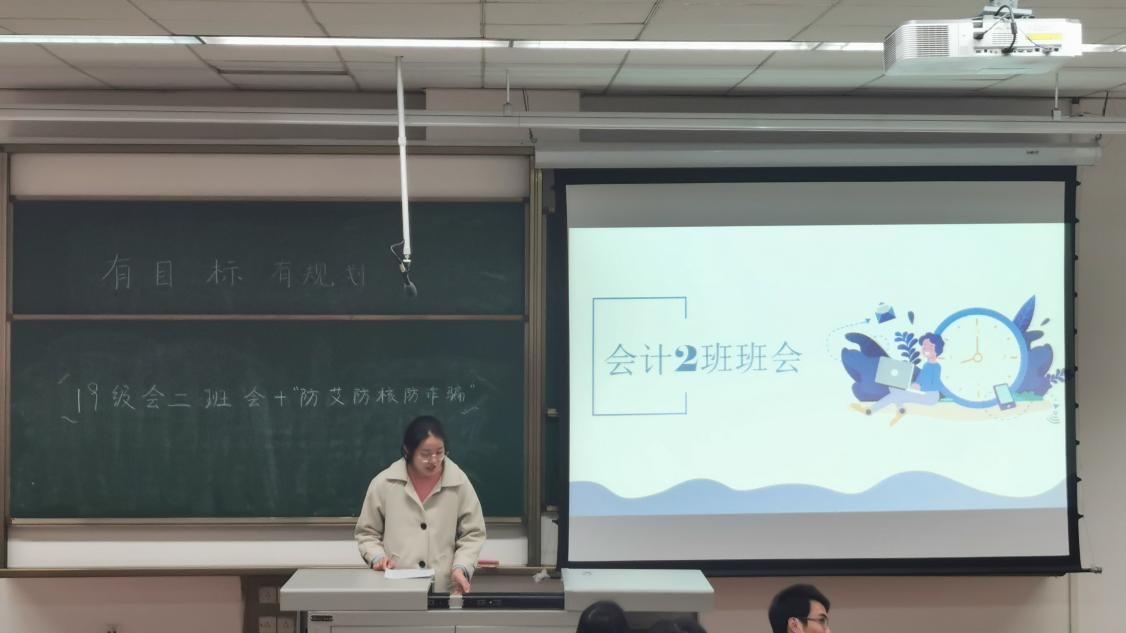 为营造班级学习氛围,提升同学学习热情,同时培养同学们的生涯规划意识,会计2019-02班在2021年3月23日晚上19点30分于J4106教室开展“有目标、有规划”主题班会。班会同时做了防艾、防传染病主题教育,旨在提升同学们预防艾滋病、结核病等传染病意识。辅导员张先凌老师、苏扬老师以及2018级会计一班王柳学姐出席本次班会。