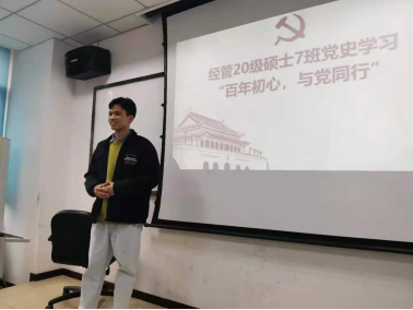 2020级硕士第七团支部于2021年4月19日19:30在0号教学楼0316教室开展了“百年初心,与党同行”的开学第一堂团课。