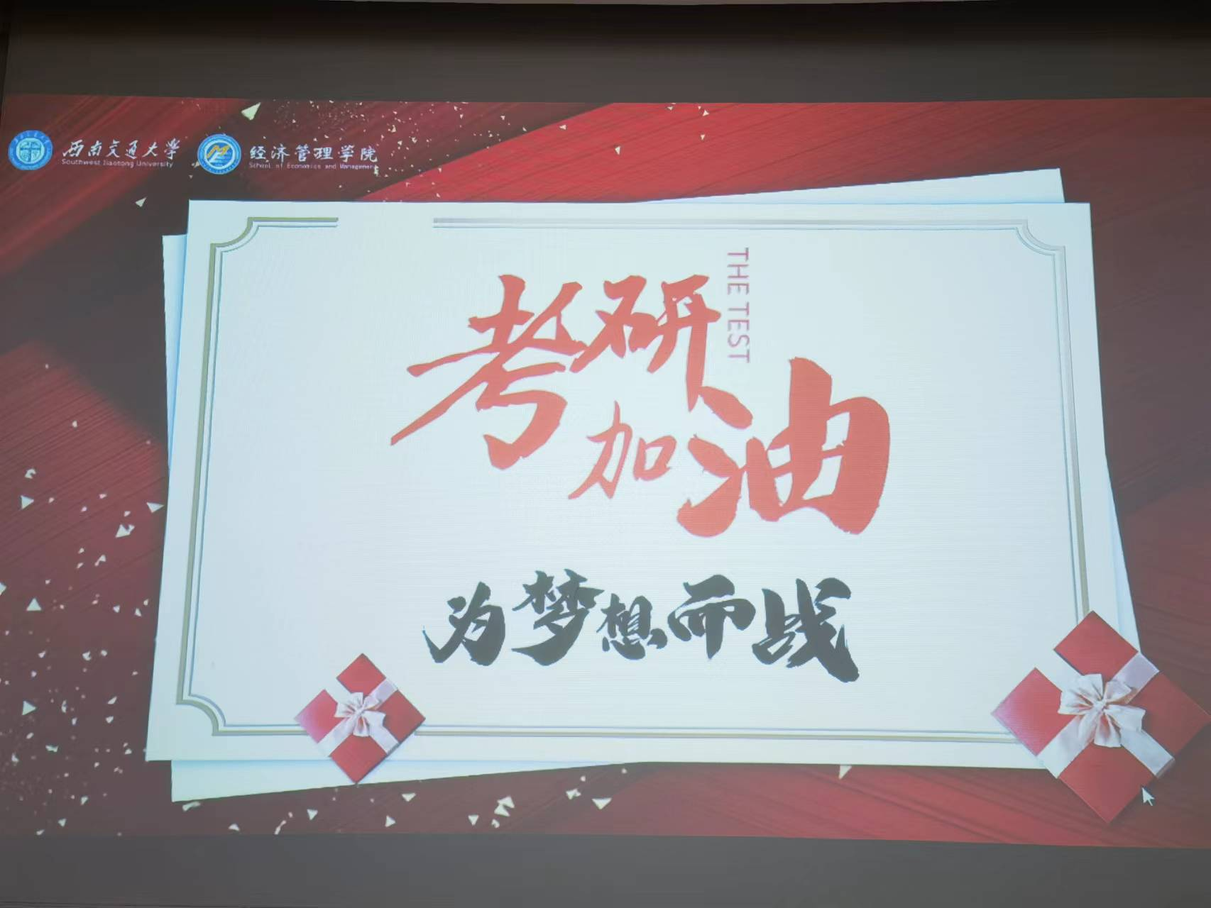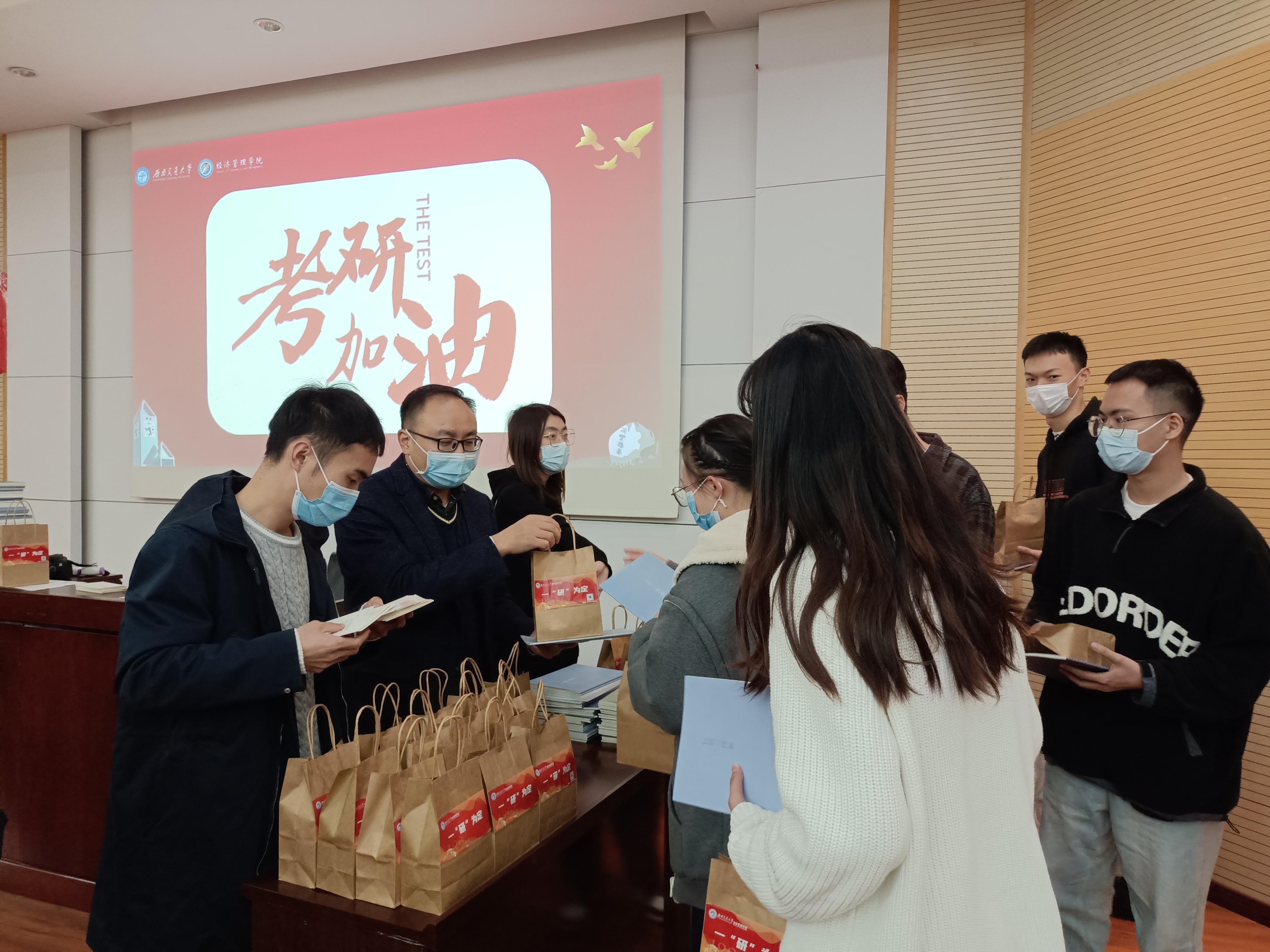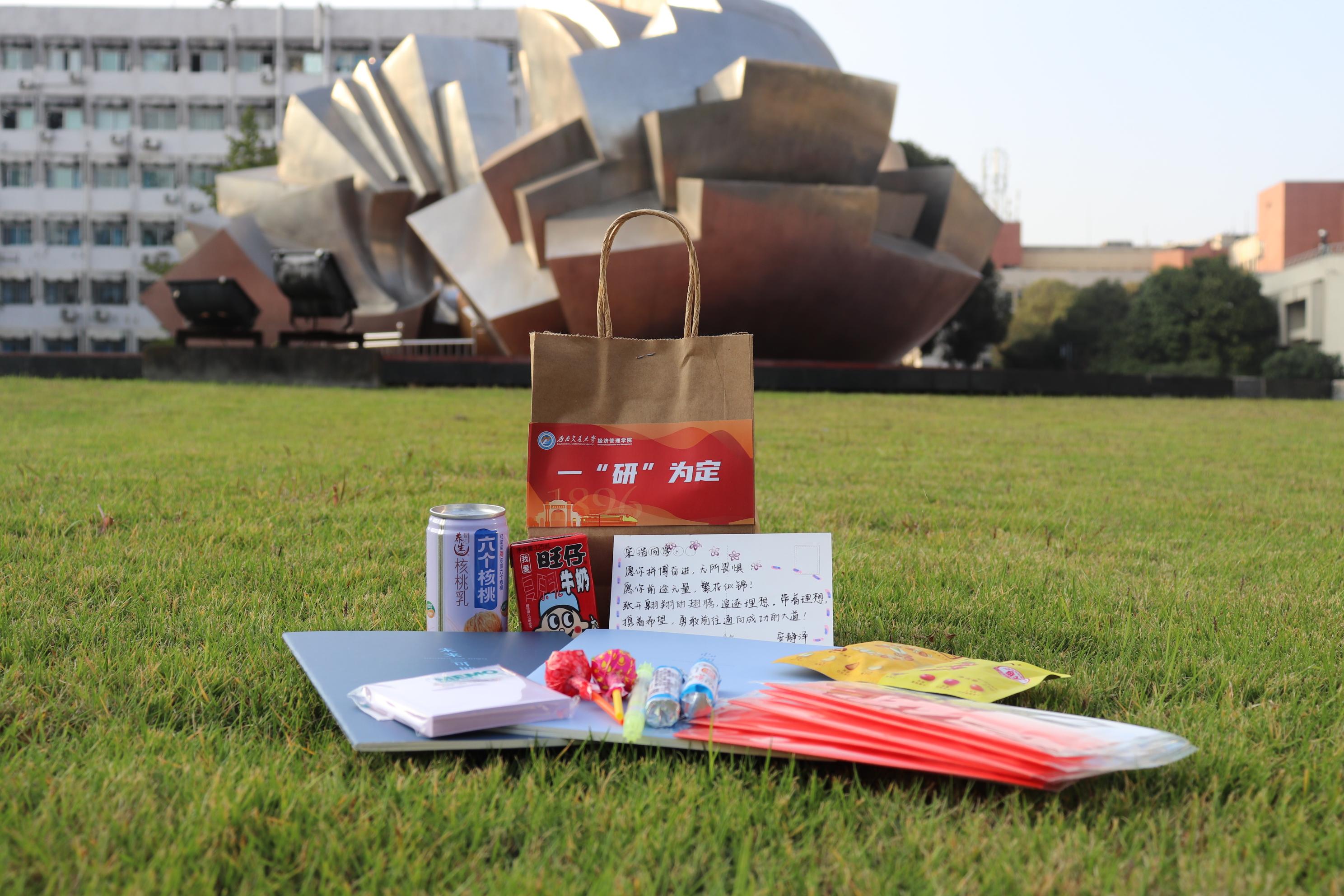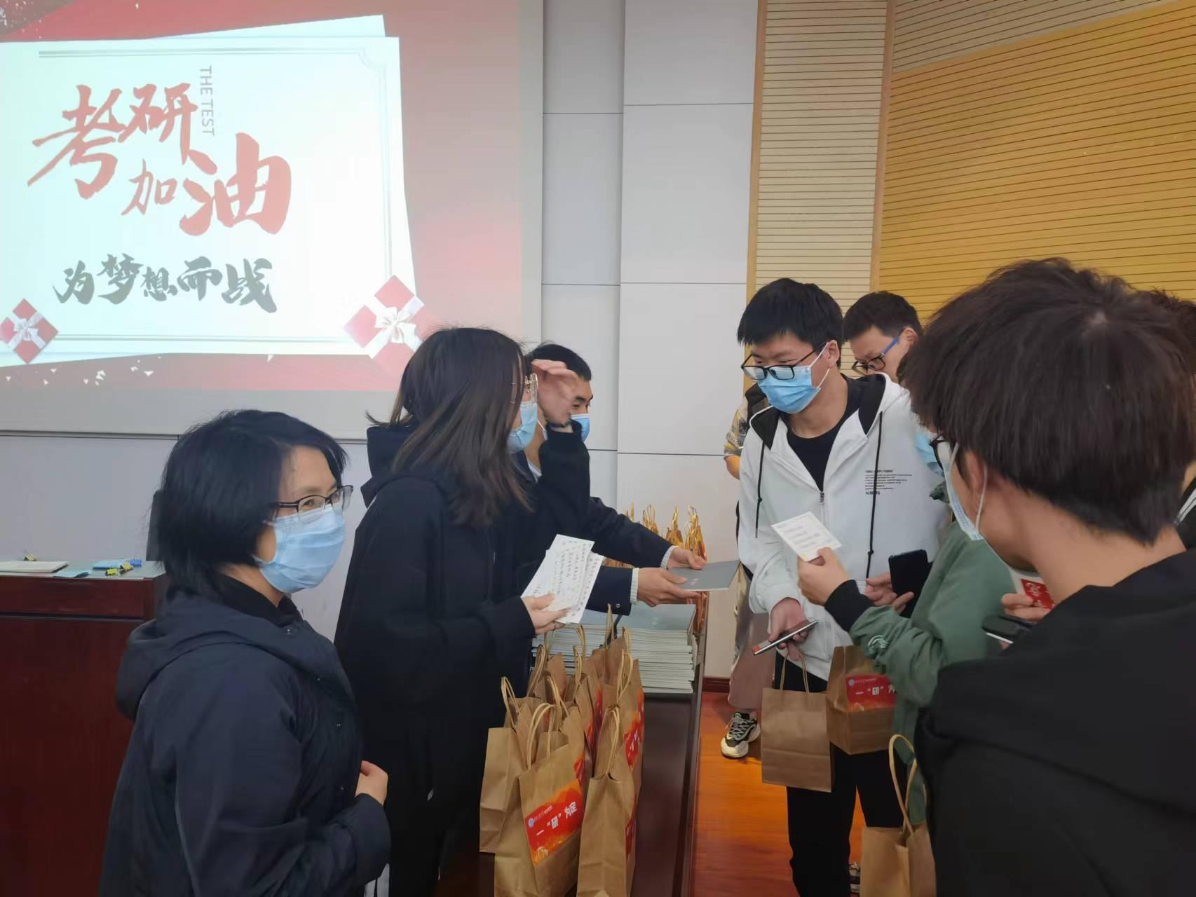 组织开展了“逐梦经管,筑梦研途”考研慰问活动,辅导员老师们撰写了《致考研同学的一封信》,并在2022年11月21日下午为考研学子送上了精心准备的“一‘研’为定”大礼包和满载祝福的明信片,在这个冬天为大家送上了一份学院的温暖。