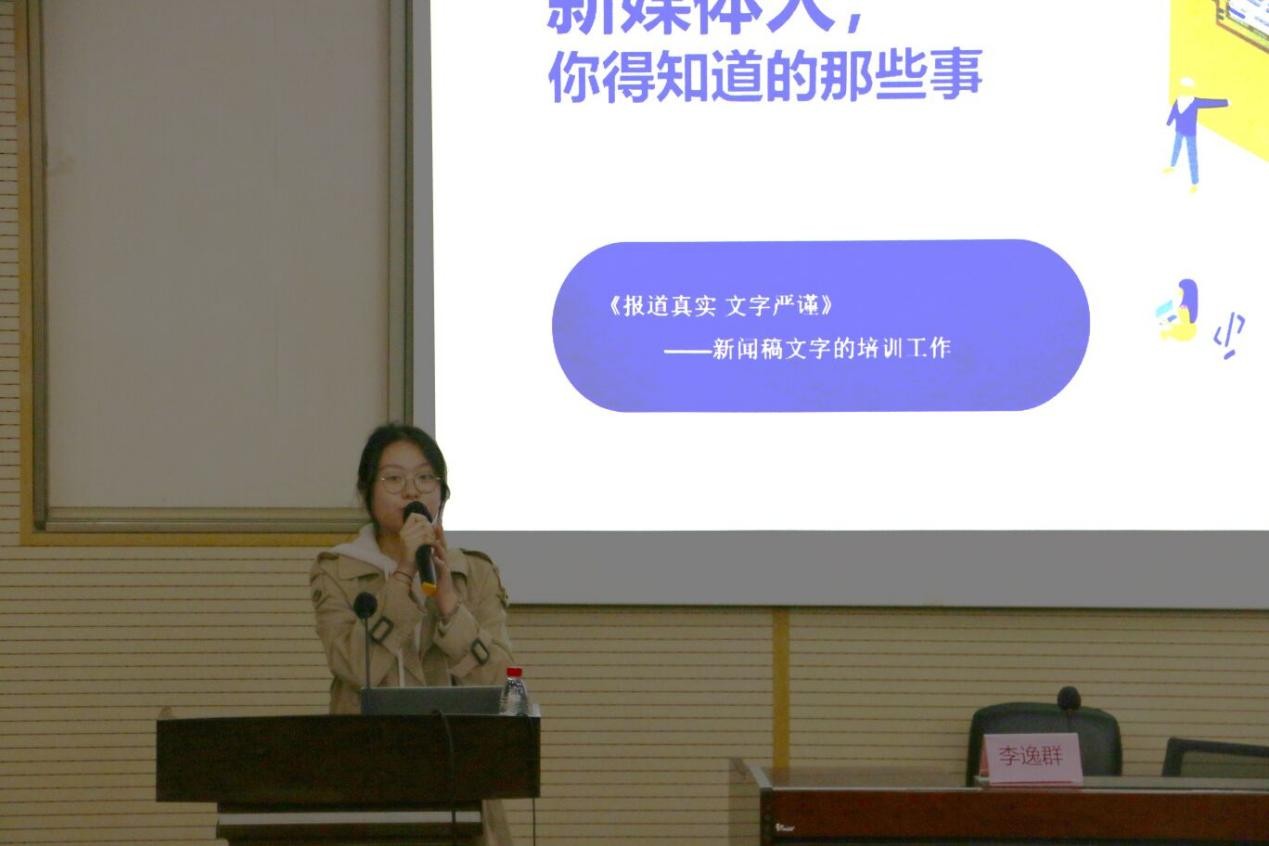 经英传媒中心副主席李逸群主讲《报道真实,文字严谨》,重点为新闻稿文字的培训工作以及常见错误纠正指南。