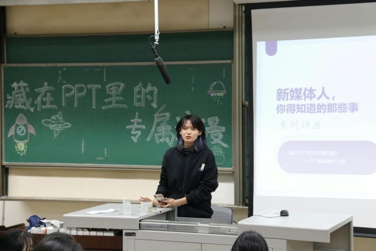 经英传媒中心上一任主席王慧主讲《藏在PPT里的专属浪漫》,指导同学们关于PPT的基础和进阶操作。