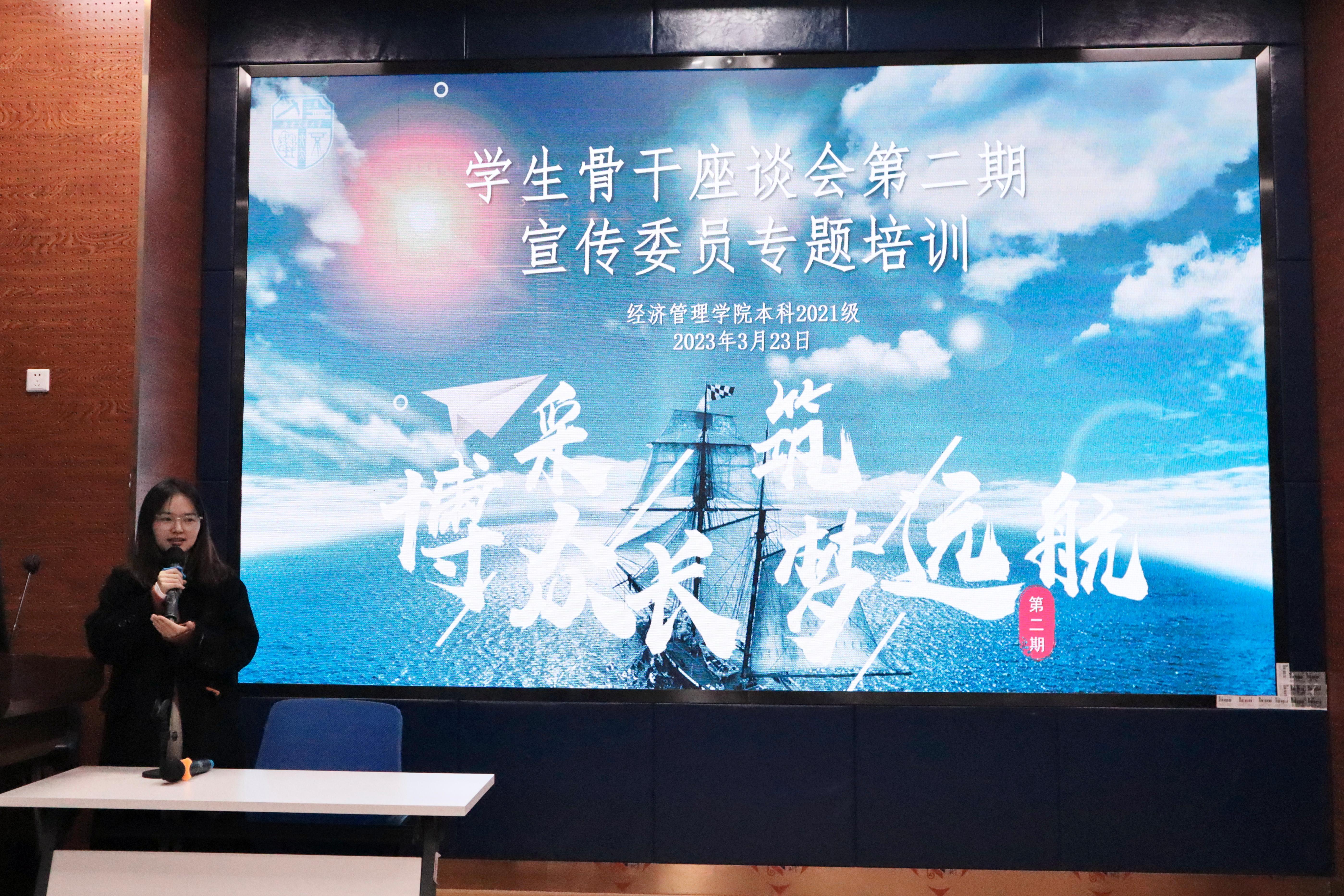 本科2021级于J0218教室开展“博采众长,筑梦远航”第2期学生骨干座谈会。本次座谈会邀请经英传媒中心新闻采编部部长李吴傲、摄影部副部长陈焕主讲,本科2021级辅导员张先凌、莫代玉出席,各班宣传委员及部分其他学生干部参加。
