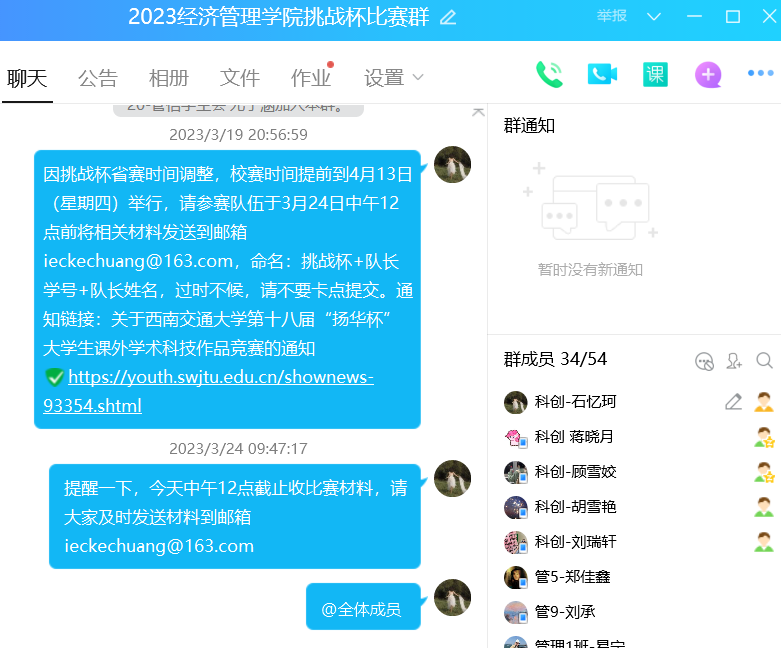 自2023年2月,各学院、各级团组织以多种形式进行广泛的宣传动员。在校团委和学院的通力配合下,经管学院师生充分了解了竞赛内容及总体安排。同时,学院团委通过建立挑战杯比赛QQ群的方式积极组织学院队伍参加比赛。各参赛队在老师指导下完成了申报作品,并完成了作品的提交。色色动漫