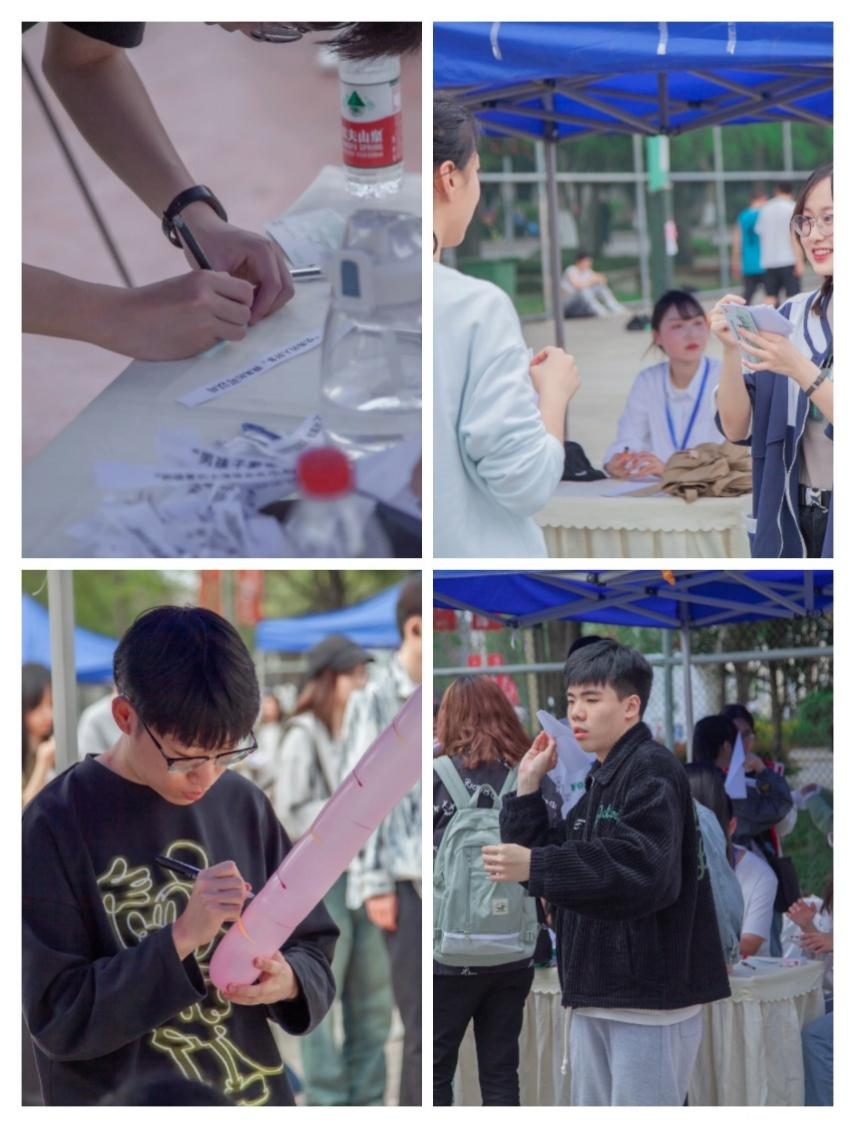 “撕掉坏情绪”游戏通过鼓励参与者撕下当下大学生的负面情绪,并对其作出积极回应,帮助参与者拓展自我认知,建立积极的心态,展现大学生积极向上的精神风貌。“心理问答题”环节,学生们参与知识问答,了解心理健康基本知识,充满启发与乐趣。在“解压火箭气球”游戏中,参与者将写有梦想或烦恼的气球放飞,释放自身压力,追求梦想。