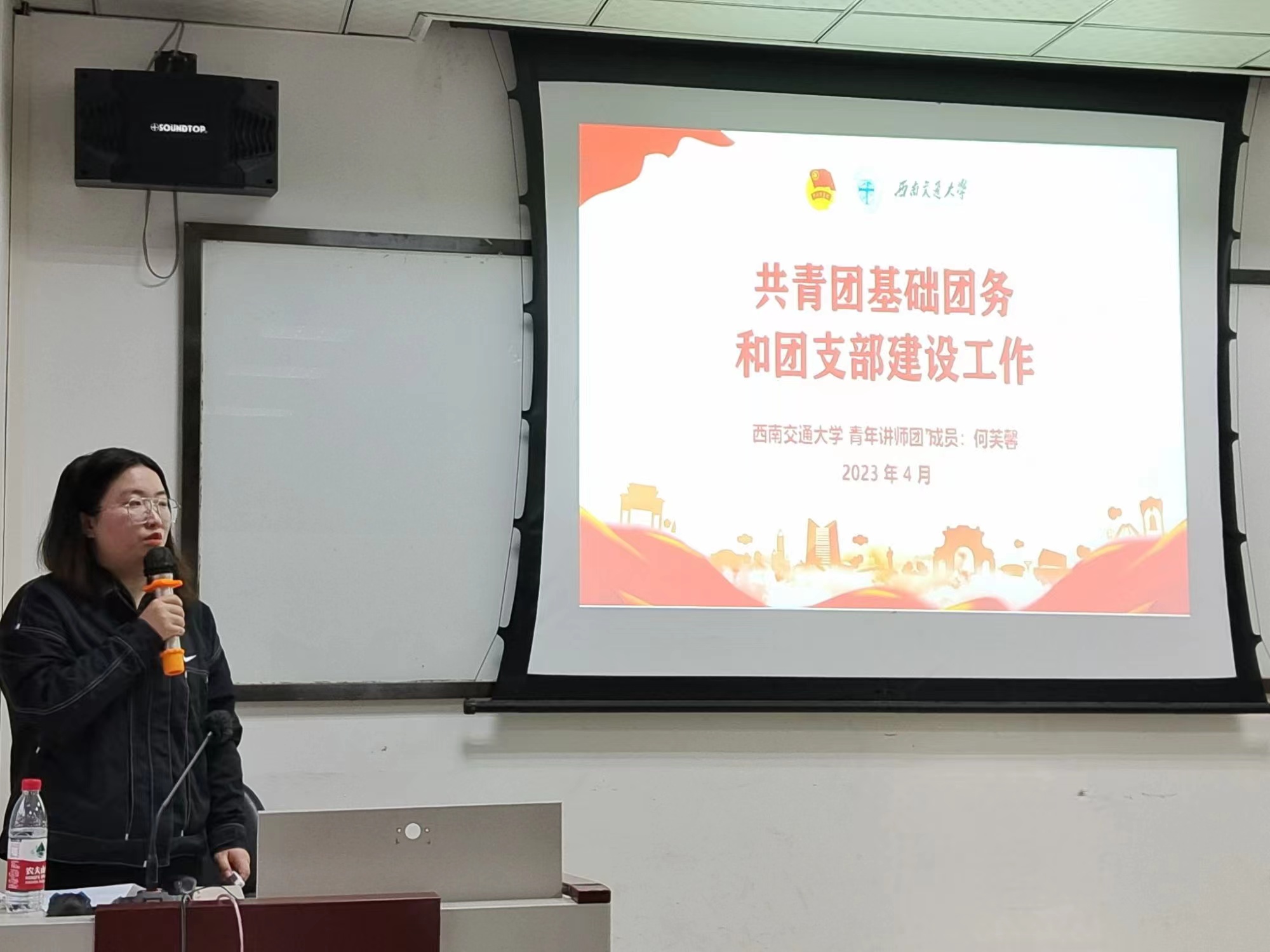 完成对共青团的基本介绍后,何芙馨着重为团干部们介绍了我校的团支部建设工作。首先是关于学校在开展青年团工作时的基本思路:巩固班级团支部的基础地位、实现研究生团支部建设全覆盖、探索青年教工团建新路径。随后具体介绍了我校的特色团支部工作模式,实施“1+5+X”计划,在培养德智体美劳全面发展的社会主义建设者和接班人的基础上,发展团支部的“X”特色。并以色色动漫