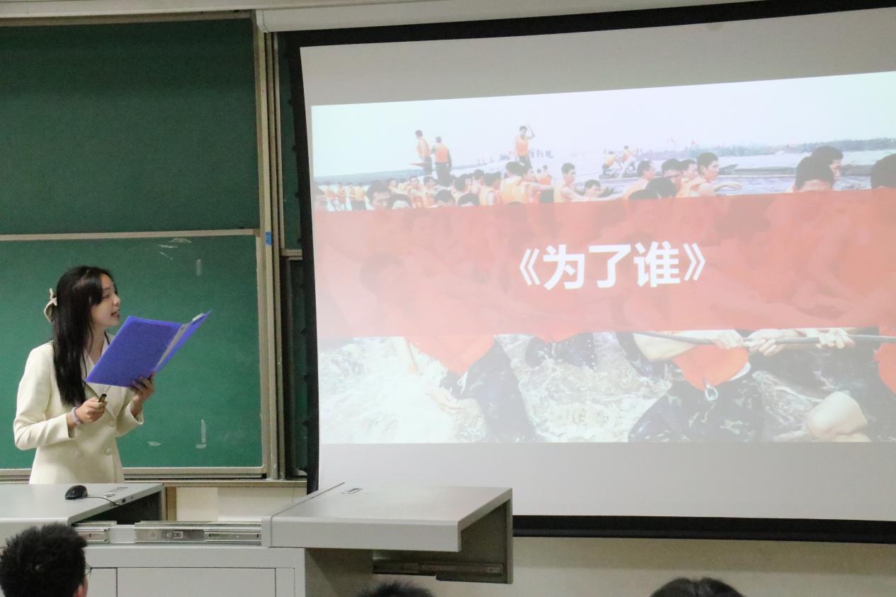 本期座谈会邀请到“音乐里的故事”《为了谁》讲演团。讲演团以生动感人的语言阐述了在2008年汶川特大地震时无数志愿者、医疗人员、救援队员、普通民众挺身而出,在最短的时间内,在废墟下抢救出一个又一个生命的故事。同时,讲演团结合图片和视频展现了在波澜壮阔的抗震救灾斗争中广大党员干部和人民军队战胜一切艰难险阻的大无畏精神以及临危不惧、舍生忘死的英雄气概。一个个紧急救援的真实故事,一幕幕令人动容的画面使得在场同学们无不动容,共同举起手中的小红旗合唱歌曲。