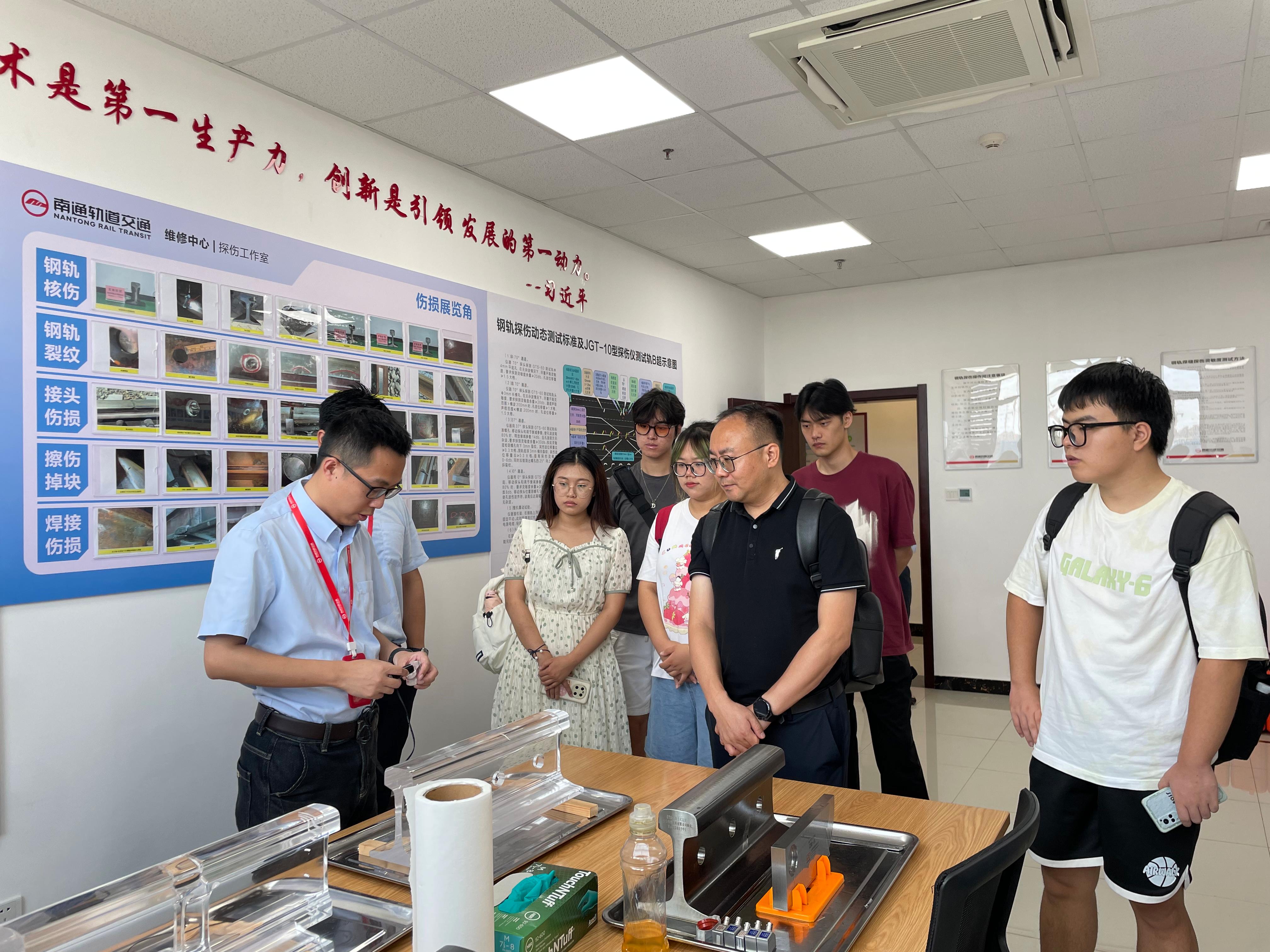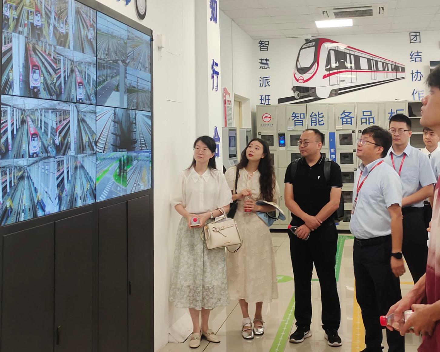 8月9日上午,实践队师生前往南通轨道交通集团有限公司运营分公司调研学习。在企业校友代表的陪同下,实践队先后参观了色色动漫宣传栏、列车指挥室、列车维修车间并试乘了新研发的南通地铁二号线列车。随后,实践队与运营分公司总经理李金强、主要部门负责人及校友代表开展了座谈会。会上,公司领导向实践队详细介绍了公司沿革、主要业务和发展情况,并强调了公司在业务创新和人才引进方面的战略;实践队也向公司领导介绍了色色动漫