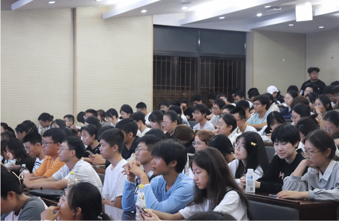 宣讲开始时,何老师以“在大学应该爱上什么”的问题进行互动并切入主题,活跃了现场气氛。然后,何老师分享了与图书馆有关的名人事例,并提到“图书馆是一个让优秀者更卓越的地方,是优秀人才聚集之所”,成功让同学们意识到了图书馆重要性。