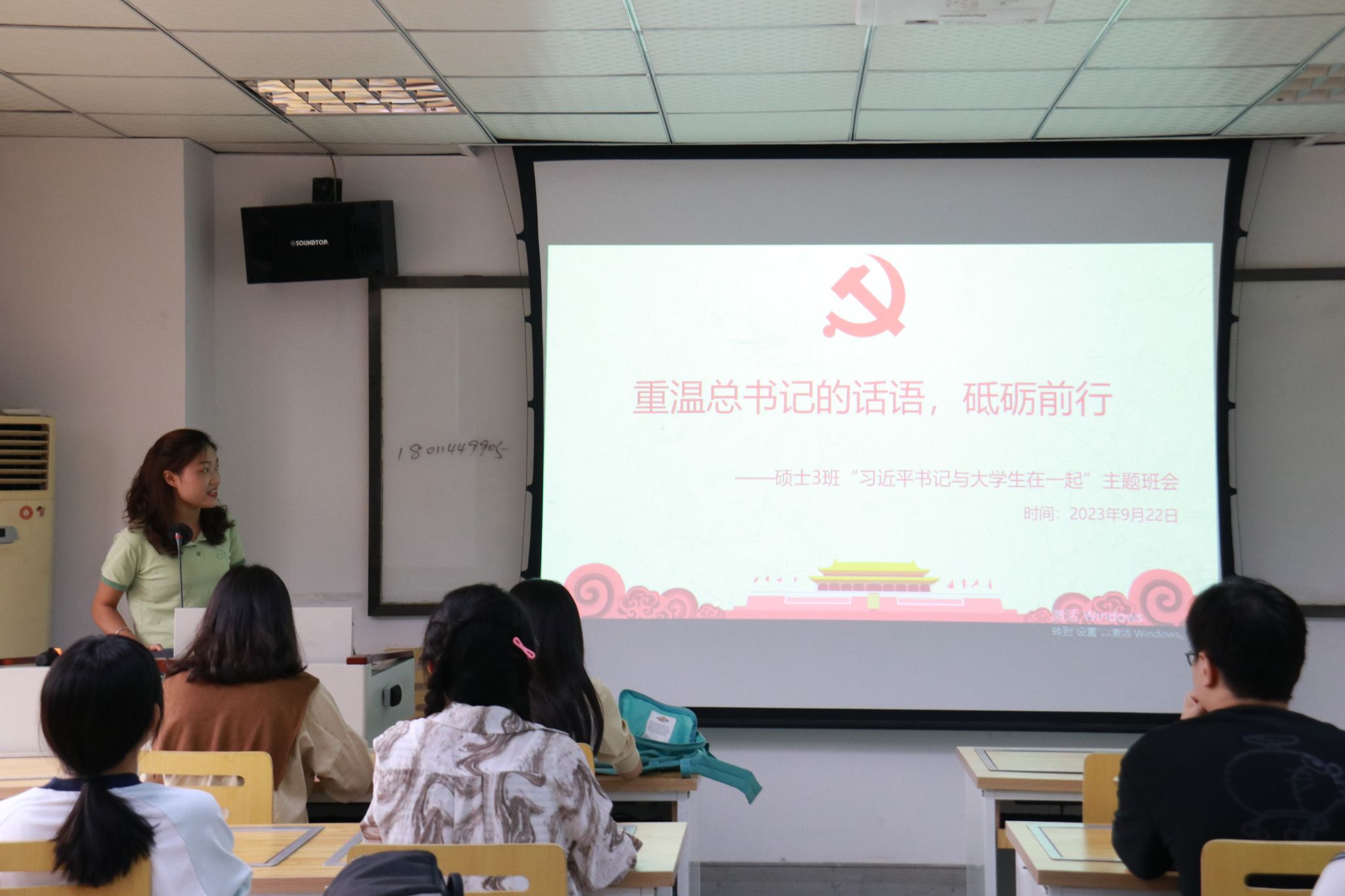于2023年9月22日-9月26日组织研究生新生各班班级开展了“习近平总书记与大学生在一起”主题班会。