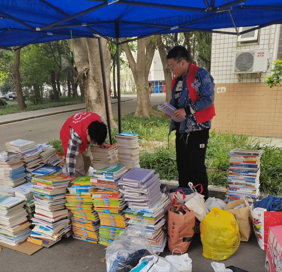 青年志愿者协会如约而至的旧衣旧书回收活动。活动于2024年3月22日-3月24日在九里校区眷诚斋13栋1单元楼下空地举办。本次活动不仅能够帮助高年级学生处理闲置书籍和衣物,同时也能为需要这些物资的人群提供便利。闲置的旧衣旧书去到有需要的地方,消除了一方的冗杂,填补了一方的空缺。经管青协的成员们齐心协力搭建起一座桥梁,让一方的便利直通另一方,这个春天因一件小小旧物的流转而更加明快和温暖。活动在校内赢得了广大学子的积极参与,收获热烈的反响。