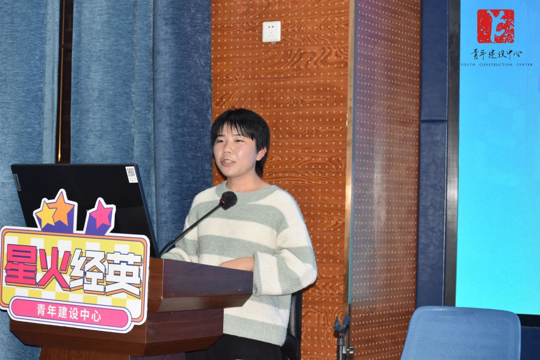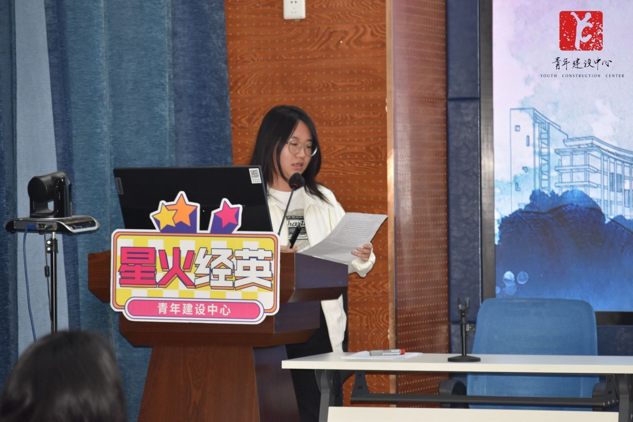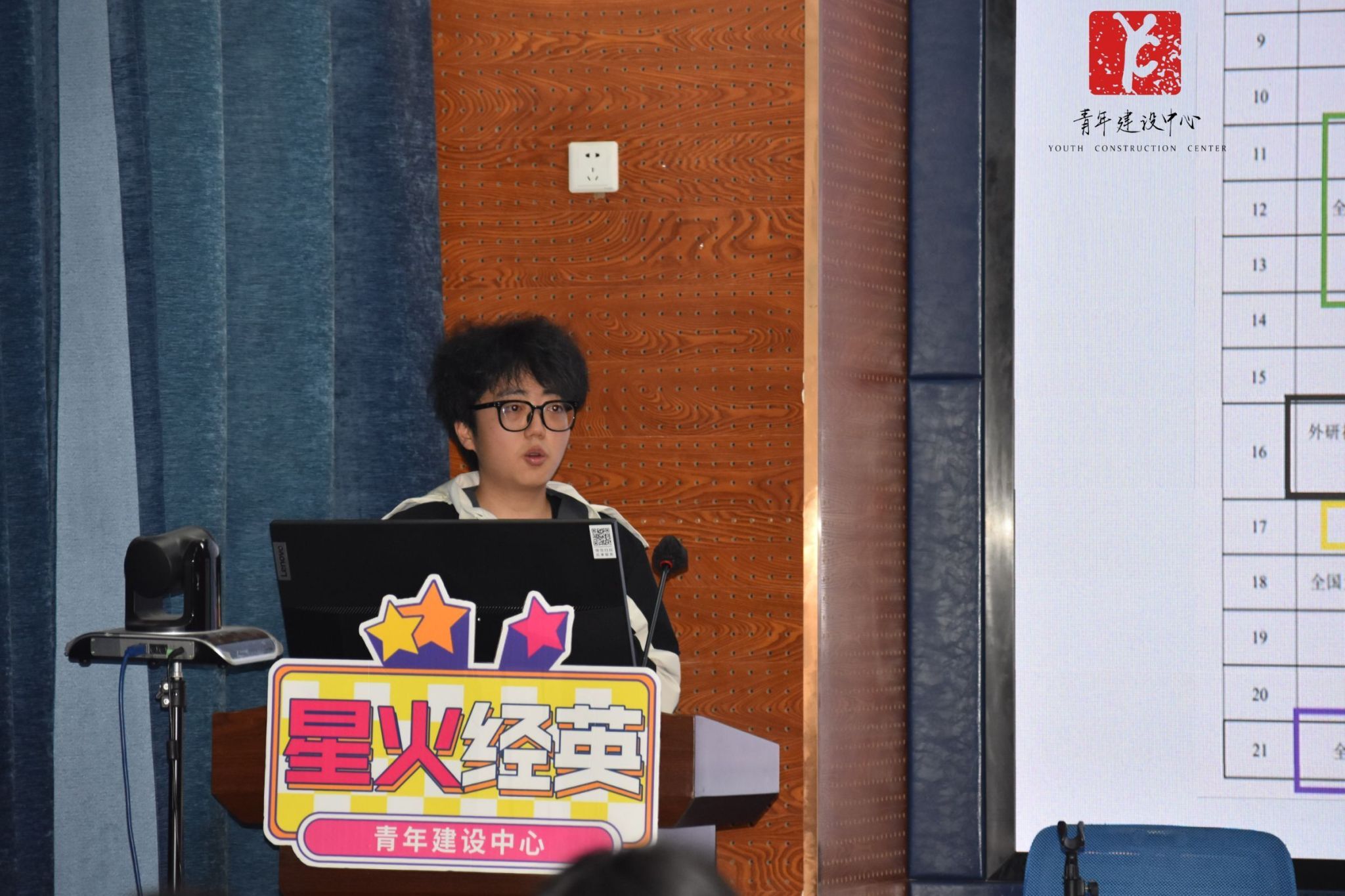 黄家仪主讲,主题为“创新扬帆竞赛海, 实践勇攀科研山”,旨在帮助团干部们了解参加竞赛的相关知识与技巧。