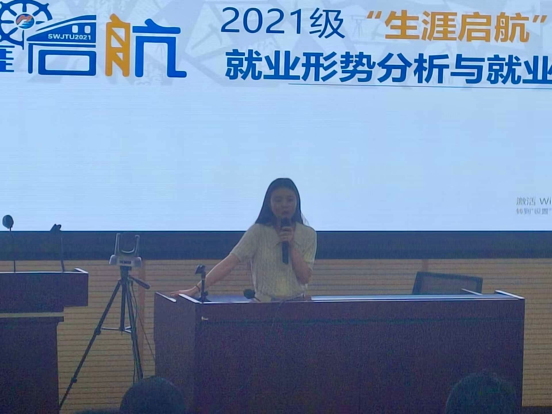 2021级辅导员张先凌老师,面向2021级本科生开展“就业形势分析与就业引导”主题讲座。