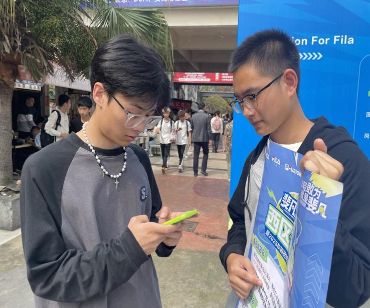 犀浦校区“斐凡生”校园招聘活动的机会。在本次活动中,六位同学作为斐乐的校园形象大使,积极协助工作人员落实活动准备和开展的各项工作,充分展现了交大学子认真踏实、朝气蓬勃的精神风貌。他们不仅为活动的顺利举办贡献了力量,也在活动过程中锻炼了组织、宣传、沟通、交流等能力,为未来就业积累了宝贵的实践经验。