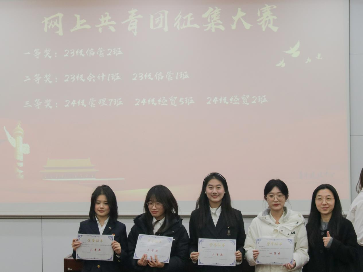 决赛现场还进行了网上共青团“成渝携手共进,青春逐梦双城”短视频征集大赛的颁奖仪式。在团日活动比赛周期中,各团支部踊跃参与,拍摄主题短视频,展现了成渝双城经济圈建设中的青春动能,助力双城在经济、文化、科技等领域的携手共进。最终评比得出获奖班级为:一等奖2023级信管2班,二等奖2023级会计1班、2023级信管1班,三等奖2024级管理7班、2024级经贸2班、2024级经贸5班。