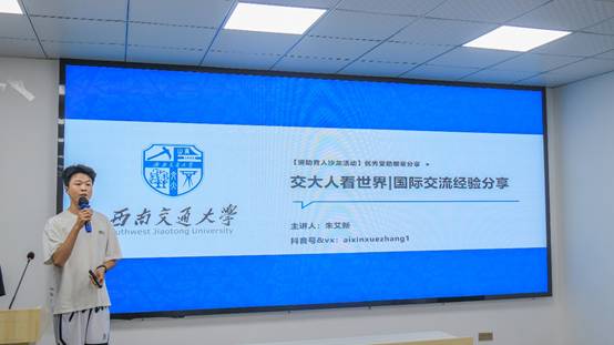 分享会上,三位来自不同学院的优秀受助学生代表以亲身经历诠释“受助-自助-助人”的成长蜕变。机械工程学院2021级本科生朱艾新,竢实扬华奖章获得者,受助参加了2025年寒假“助梦启航”天睿国际教育奖学金研学项目。他分享了寒假时去日本研学的国际交流经验与自身成长经历,激励同学们借助资助的力量,勇敢走出舒适区,拓宽视野,提升自我。