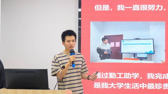 活动最后,党委学生工作部学生资助管理科、资助大使宣讲团指导老师唐海峰在总结中肯定了三位受助代表的精彩分享。他指出,勤工助学之星、国家奖学金获得者等优秀受助朋辈的成长故事,生动诠释了从“受助者”到“自助者”再到“助人者”的蜕变历程,希望各位同学能够传承自强精神,树立感恩意识,践行青春担当。