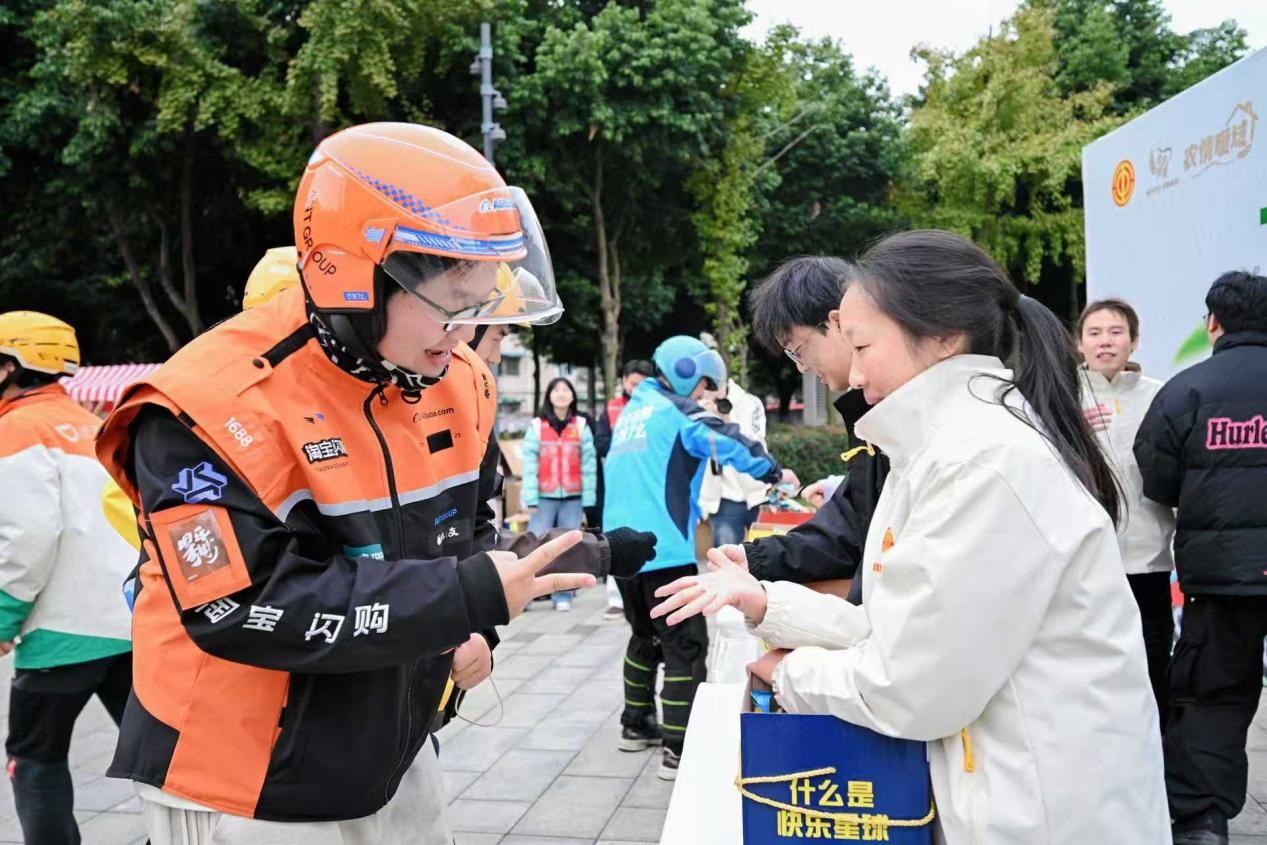 最后,现场工作人员和2025级工商管理类8班团支部的青年志愿者们一同为每位参与活动的骑手送上冬日暖心礼包。