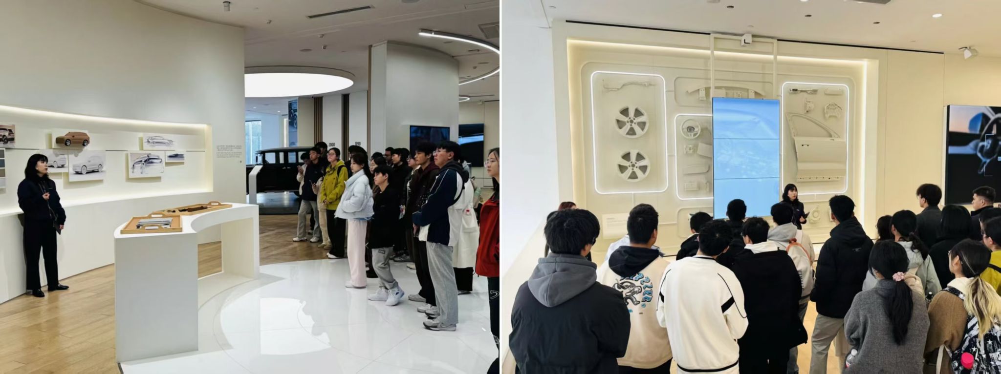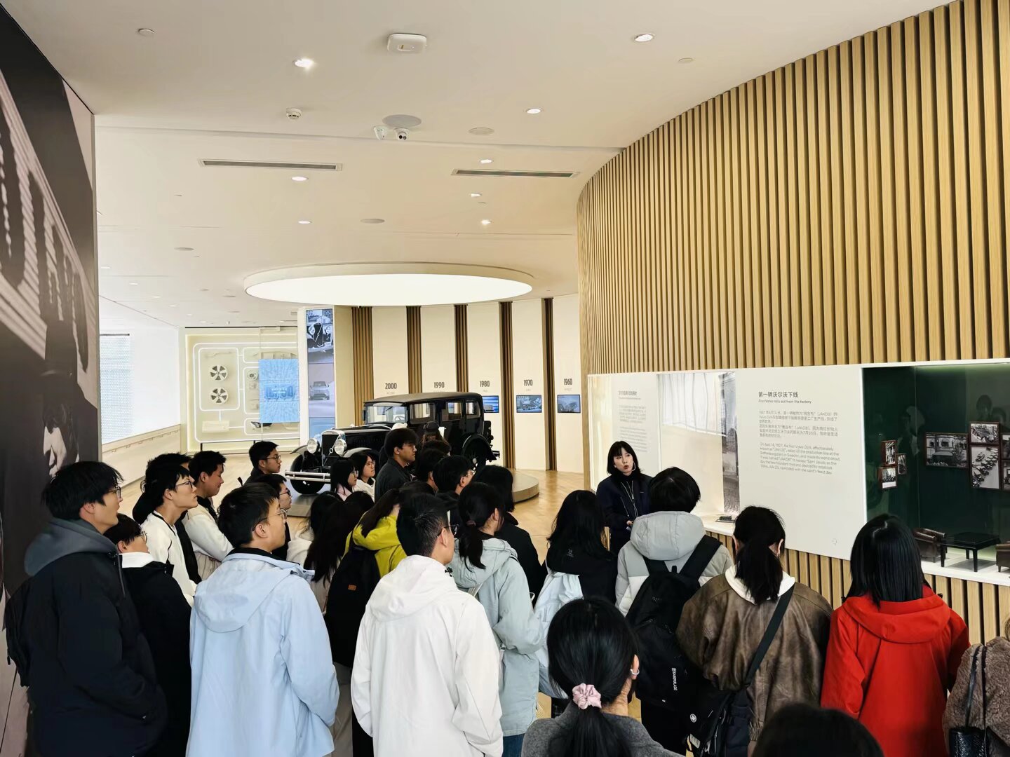 接下来,讲解员就沃尔沃的核心技术、品牌定位、品牌溯源具体展开,向同学们展示了沃尔沃新能源汽车的电池部位以及车身材料组成,同学们更加系统地认识到技术创新如何驱动品牌价值构建,深化了对企业可持续竞争优势形成机制的理解。