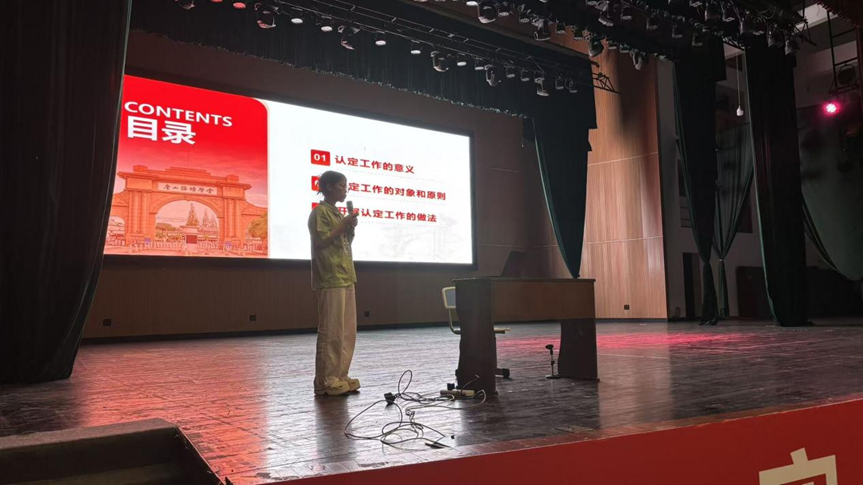 游婷老师系统阐释“第二课堂”成绩单制度,详细说明思想成长、社会实践等七大模块的学时要求与评价机制,特别是美育、劳育的实践路径,引导新生从入学伊始就重视综合素质的全面发展。