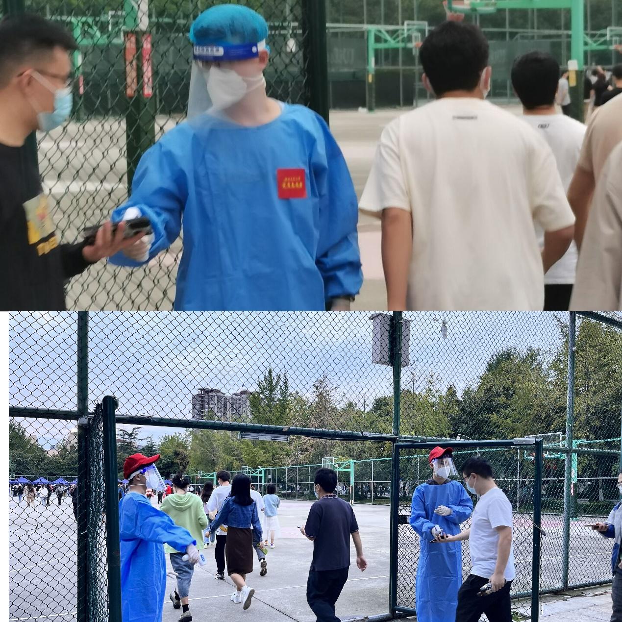 在成都市武侯区武科东二路团结社区,入党积极分子付欣悦协助社区工作人员摸排压实,统计居民信息。两栋楼,两百多住户,用纸笔挨家挨户记录下居民们的信息。虽重复单调,却是社区充分掌握居民情况的关键信息来源,不容马虎,惟有慎终如始,才能在病毒面前有更多的底气和志气。同在成都市武侯区的入党积极分子徐婧在棕南社区成都银行锦城文创支行附近开展核酸检测志愿服务工作,她一丝不苟整理核酸检测人员信息,扫码登记,维持秩序。