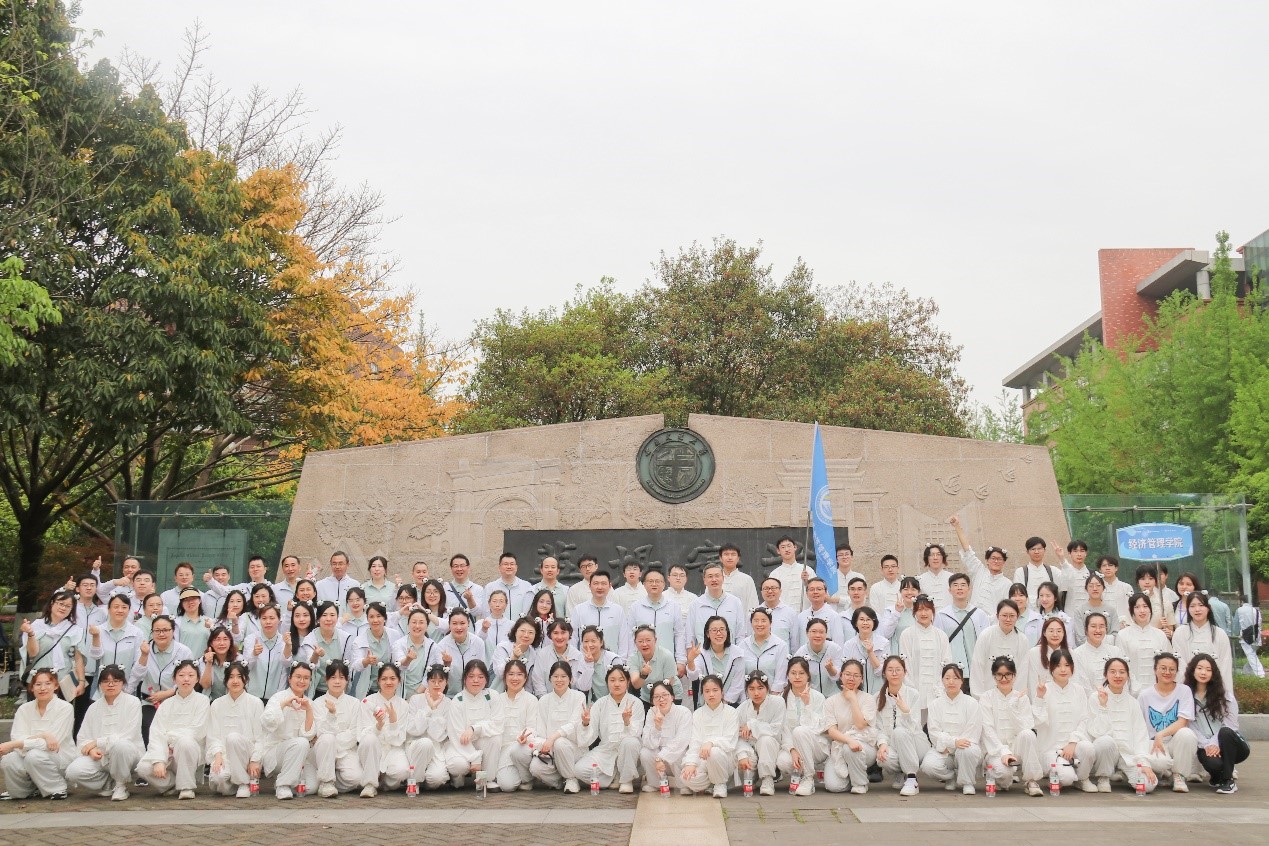 师生方阵院旗高扬,众人同行。经管师生热情高涨,精神抖擞,以饱满的精神状态前进,顺利抵达竢实扬华墙,顺利完成启动仪式。