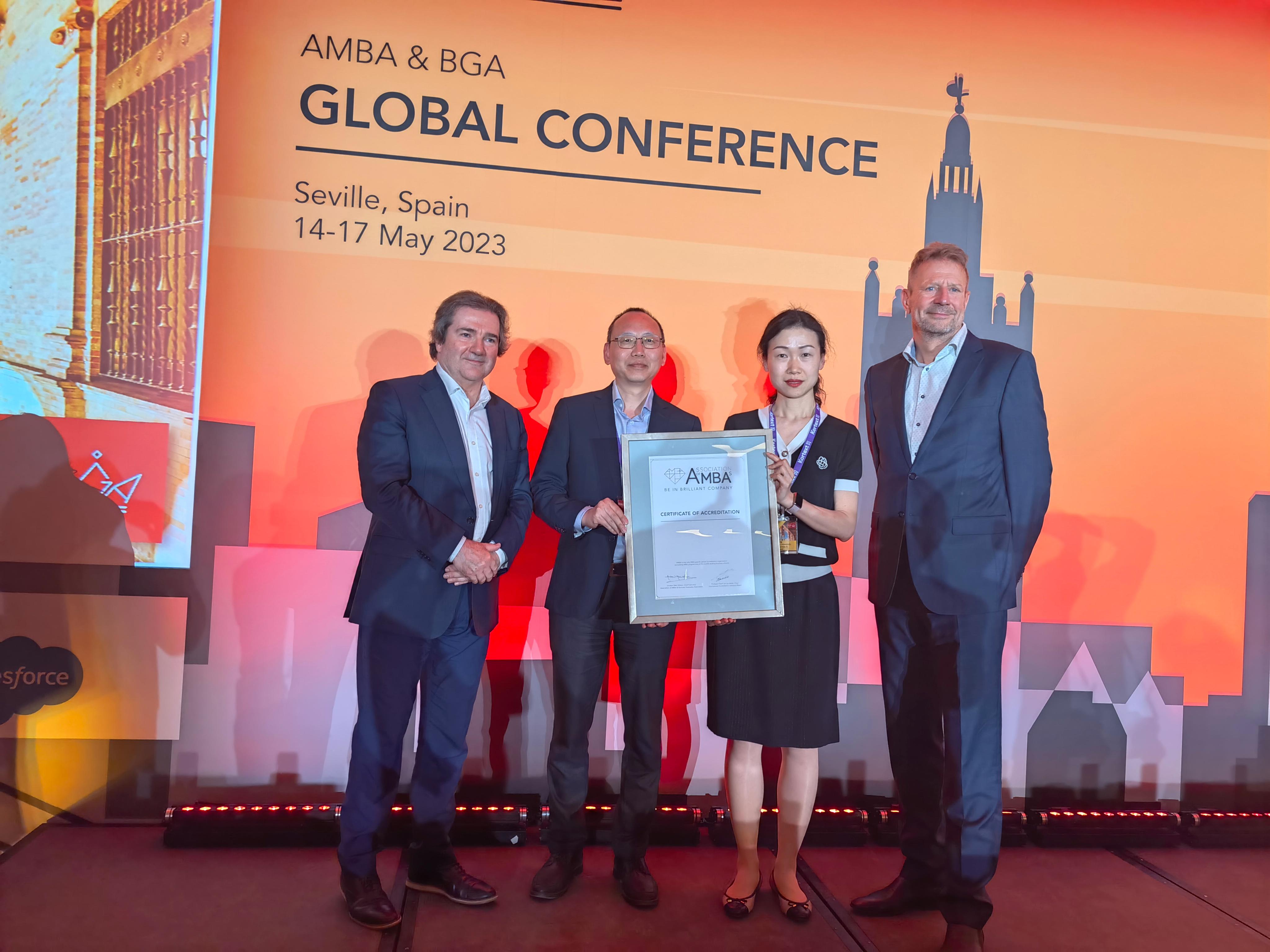 于2019年获得为期五年的AMBA再认证,并将于2024年迎来第三次AMBA再认证。此次李良和王一帆作为学院代表领取了再认证证书,与AMBA&BGA主席、CEO、认证专家等核心成员进行了面对面会晤和积极交流,了解了MBA项目发展重点与趋势及AMBA认证最新标准,为学院AMBA再认证工作及MBA项目未来发展汲取了丰厚经验。同时,学院在会议中展示学院特色并积极探索国际交流合作机会,为提高学院国际影响力,与其他国际高等商学院达成合作打下良好基础。