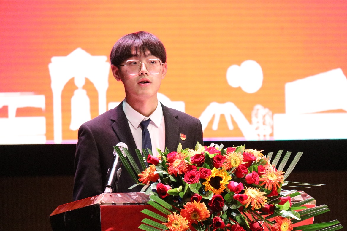 研究生新生代表凌川奇分享了自己对于“君子之责”、“创新发展”、“团队思考”的理解。他认为作为一名研究生,要着重培养创新思维,保持对科学的好奇心;要做到团结包容,与团队高效合作,攻克科研难题;要明确自身责任与担当,以自己的青春和热血,树立经世济民的大担当。