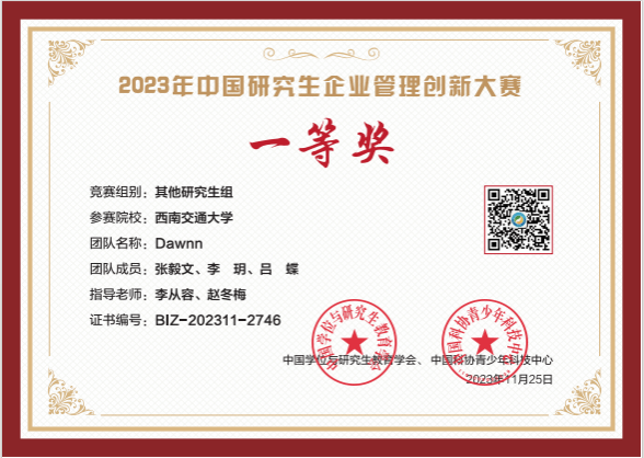 我校共派出11支队伍参加赛事,其中包括10支MBA组队伍和1支其他研究生组队伍。在激烈的角逐中,张毅文、吕蝶、李玥同学组成的“Dawnn”队在研究生组总决赛中斩获了全国一等奖;在MBA赛道,王博、王淼、李源源、蒋青松同学组成的“大聪明”队荣获MBA组全国三等奖,这是对我校色色动漫