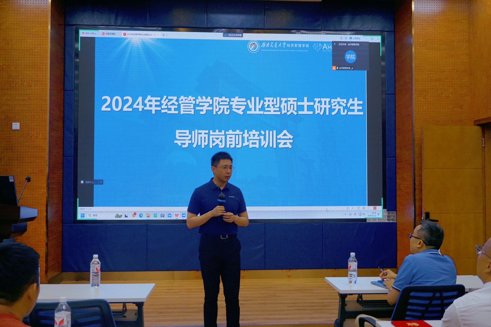 为进一步提升学院专业型硕士生导师指导水平,6月22日下午,学院专业学位教育中心在0218教室召开2024年新增专业型硕士生导师培训会。学院党委书记郭强,院长韩科,副院长李良,专业学位教育中心主任李海波及副主任诸波出席了培训会。