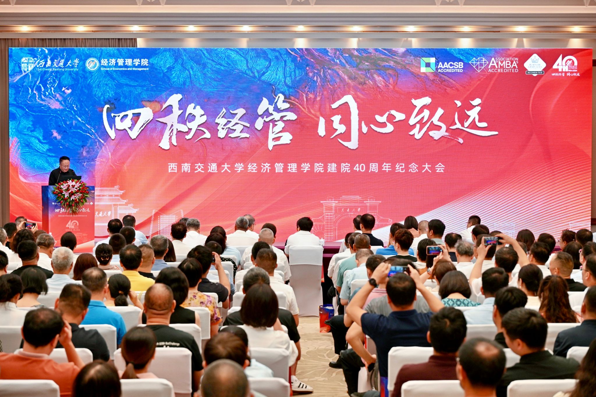 在岁月长河中留下坚实脚印。站在四十周年新起点,学院将继续弘扬“竢实扬华,自强不息”的交大精神,谨记“格物致知,和合共进”的经管院训,培养更多兼具国际视野和社会责任感、堪当民族复兴大任的优秀人才,在学术领域不辍钻研,在行业领域深耕创造,为中国式现代化挺膺担当,为社会发展贡献力量!