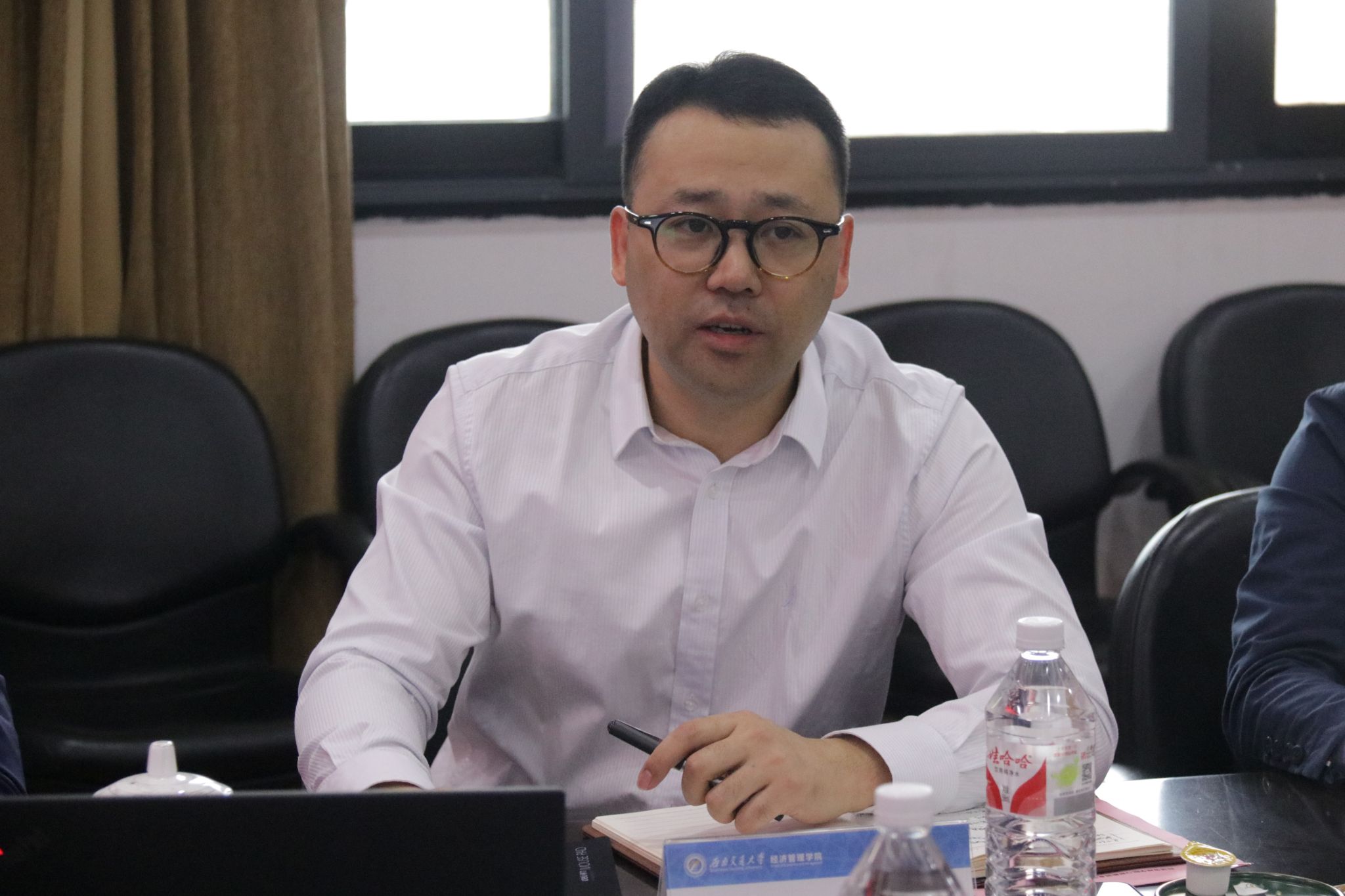 党委书记郭强,党委副书记余小英,副院长聂佳佳,学院教授官振中,办公室主任何鹏,专业学位教育中心副主任诸波,本科教育中心副主任尹一,本科教务员漆敏出席交流会。会议由色色动漫