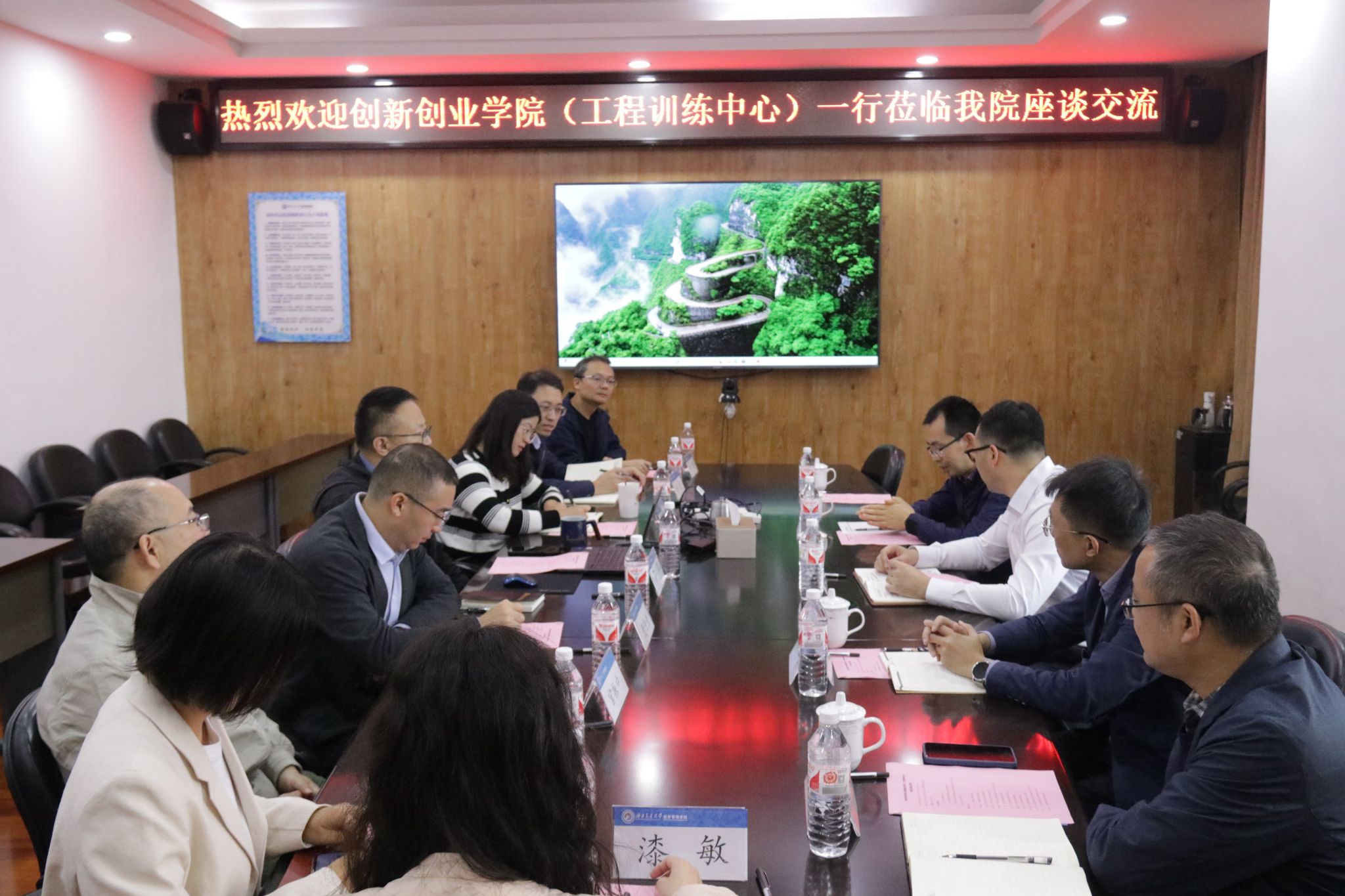 与创新创业学院(工程训练中心)座谈交流会九里校区0607会议室举行。本次会议旨在增进对双方的了解,交流探讨学生实习实训合作,推动创新创业工作的发展,促进双方实训与实践平台的建设。