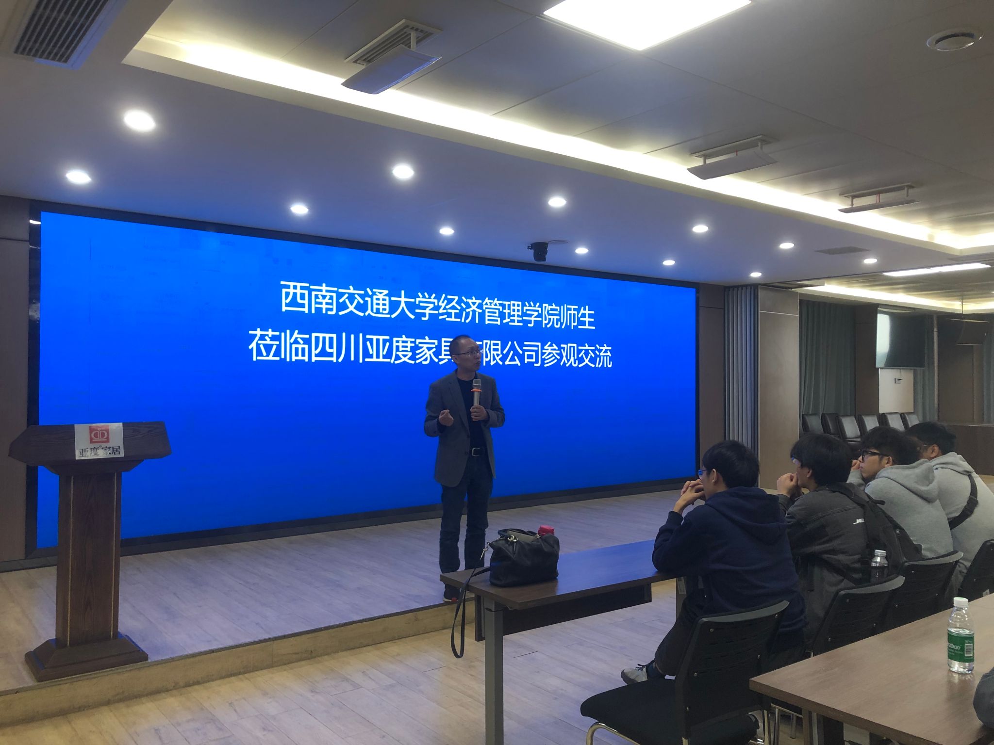 活动伊始,四川亚度家具有限公司常务副总经理胡继飞先生为同学们详细介绍了公司的发展历程、色色动漫以及市场定位。他向大家展示了公司的可视化电子屏,通过系统可视化技术,展现了亚度家具在智能制造和信息化管理方面的先进成果,让同学们对现代家具制造业的科技应用有了直观的认识。