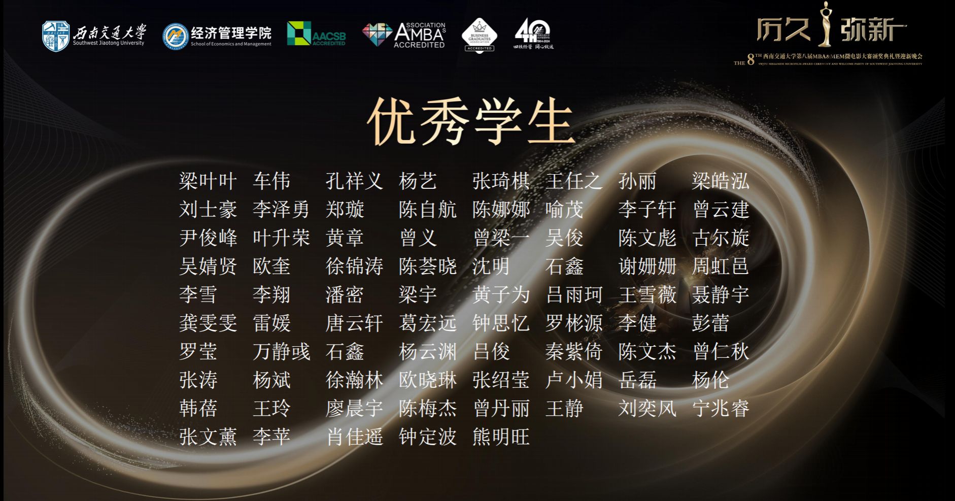 在这令人无比激动和难忘的晚会中,学院为2023级MBA、MEM的77名优秀学生与24名优秀学生干部举办了颁奖仪式;还为2024级MBA、MEM入学成绩前10的学员颁发了新生入学奖学金。