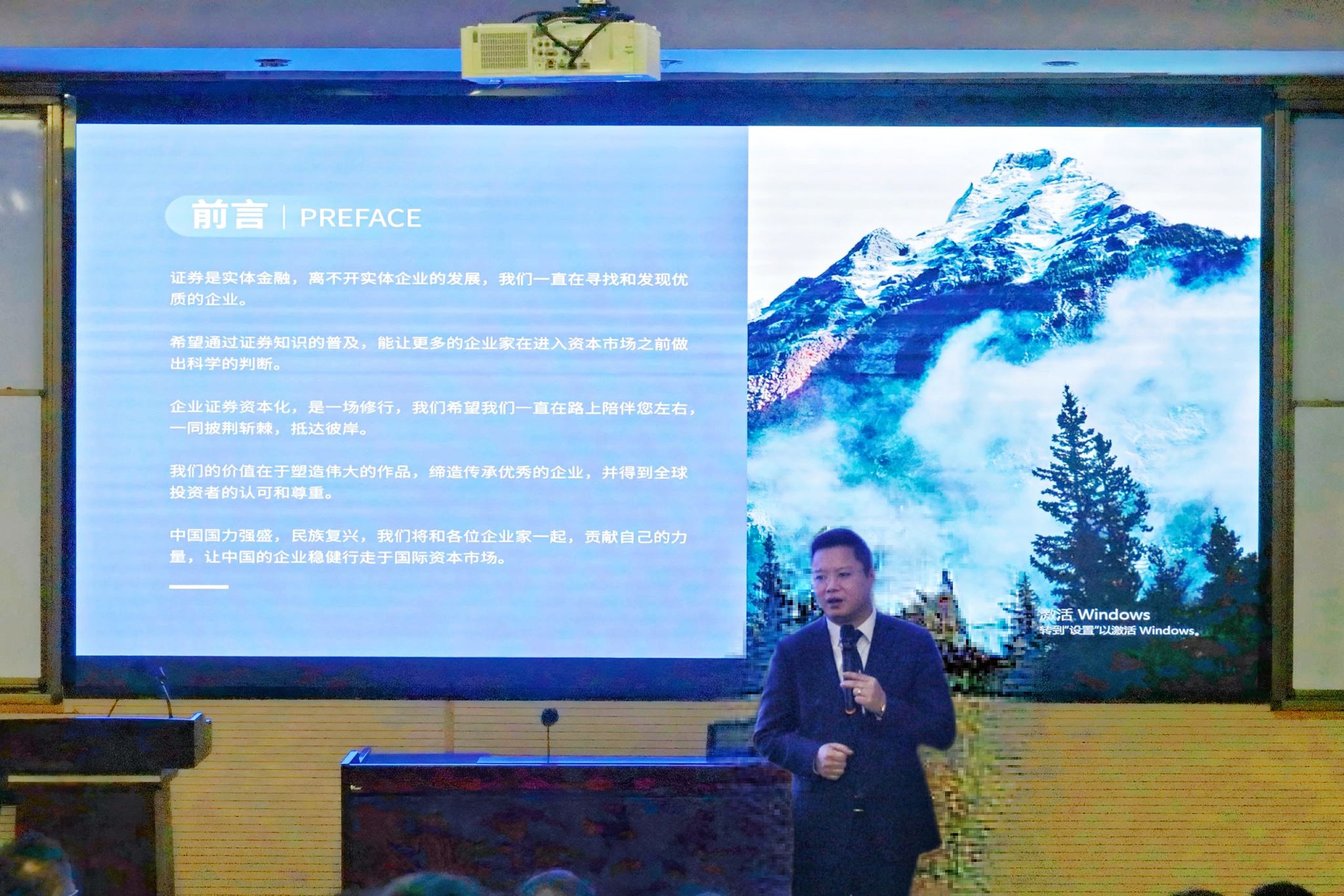 开展了主题为“企业证券资本战略布局”的讲座,旨在通过分享国际资本市场业务实操的方法与经验,促进学生对企业证券资本战略布局的了解,专业学位教育中心主任李海波主持讲座。