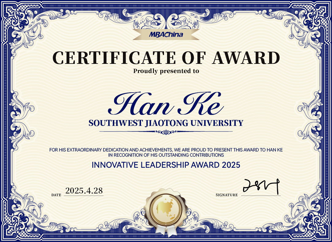 院长韩科凭借其在商科教育中卓越的战略视野、创新实践和行业影响力,荣获“2025年度亚洲商学院创新领导力奖”。