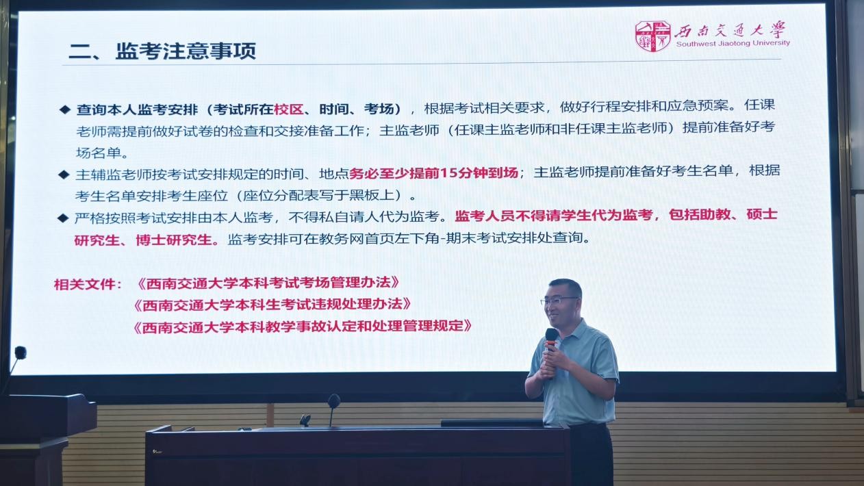 考试期间,检查组深入考场一线,开启全方位、动态化的细致检查。学院领导检查了考场设施与布局,重点检查监考教师履职尽责情况,确保监考工作规范、严谨。党委书记蒋佳、院长韩科等领导在检查过程中,不仅密切关注考场秩序,还对考试流程规范、考风考纪维护进行现场督导,全方位保障考试的公平公正,为学生营造一个风清气正的考试氛围。