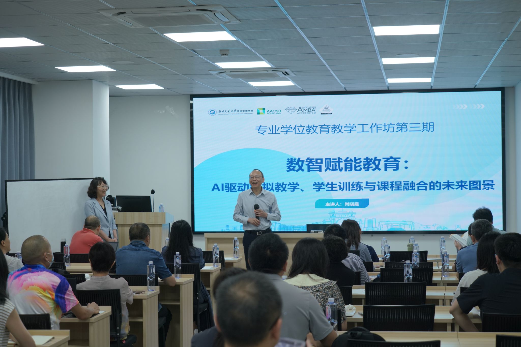 专业学位教育教学工作坊第三期于0819教室顺利举办。本次活动聚焦“数智赋能教育:AI 驱动模拟教学、学生训练与课程融合的未来图景”,邀请CESIM中国副总经理尚晓霞作为主讲嘉宾,为学院教师搭建交流平台,共探数智时代专业学位教育教学发展新路径,学院副院长李良主持活动。